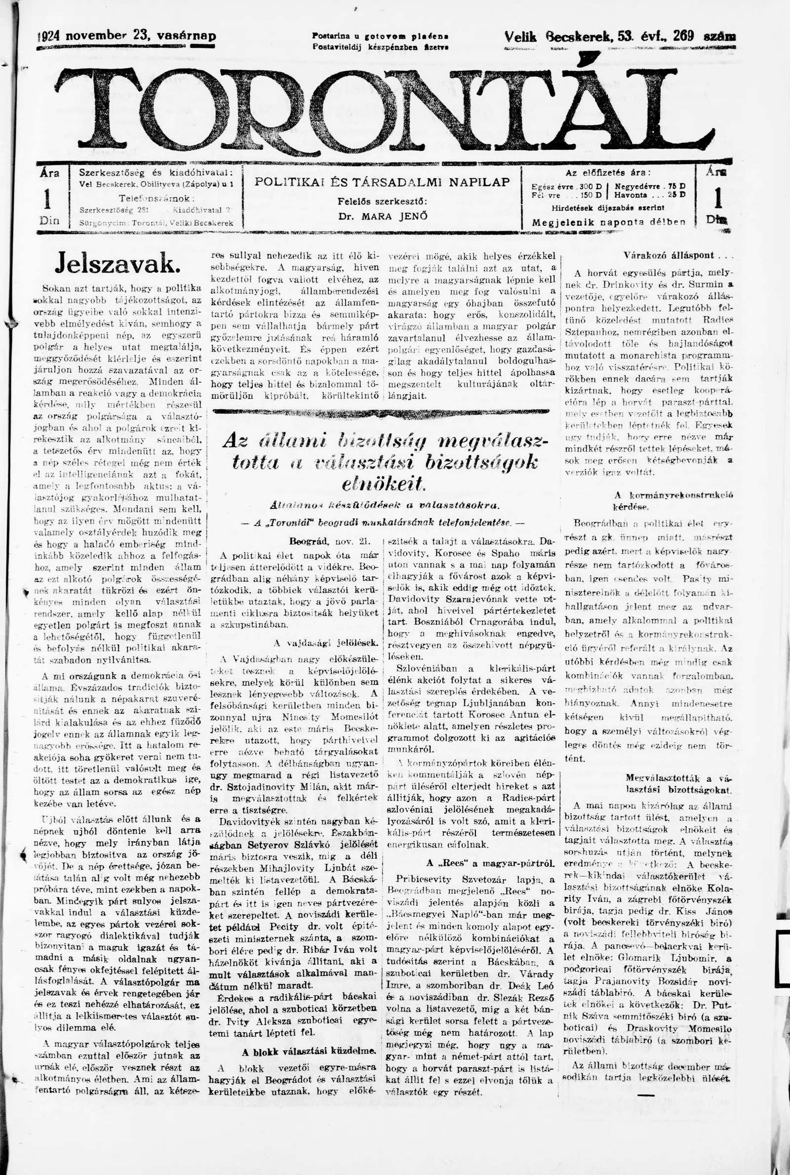 Torontál, 53. évf. 1924. november 23. 269. sz.