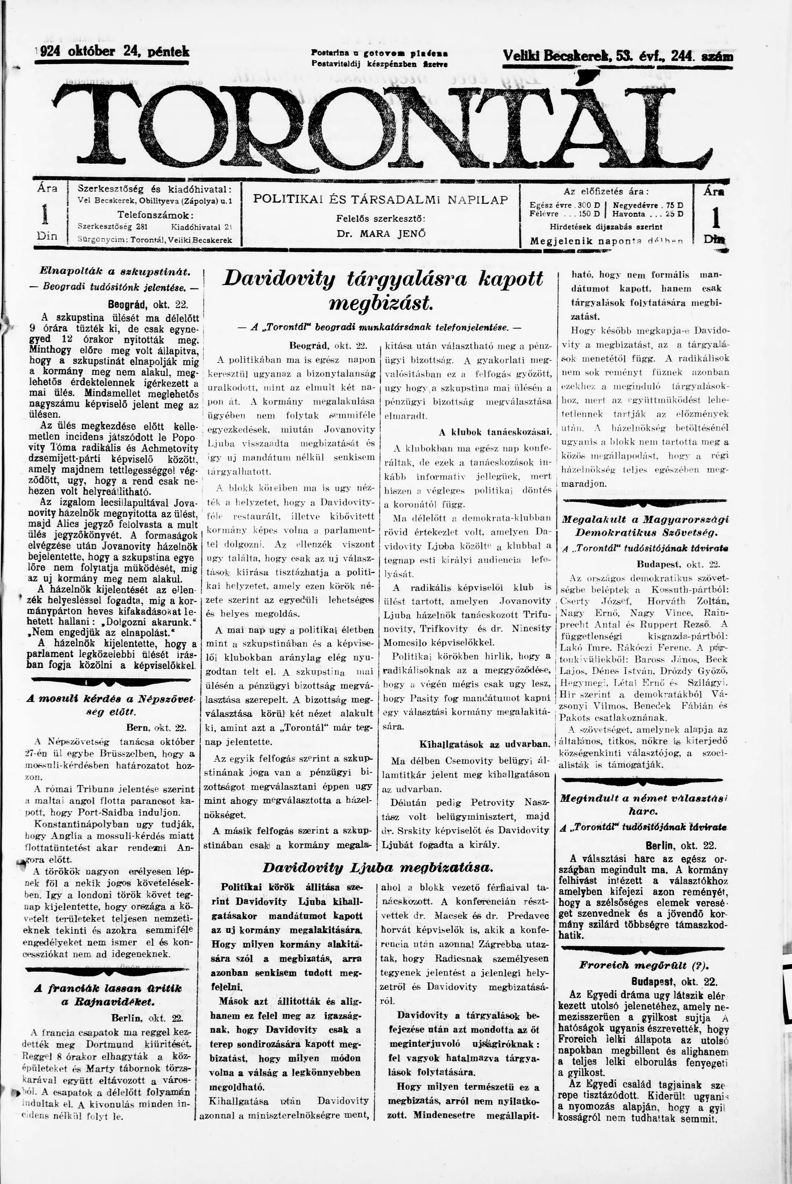 Torontál, 53. évf. 1924. október 24. 244. sz.