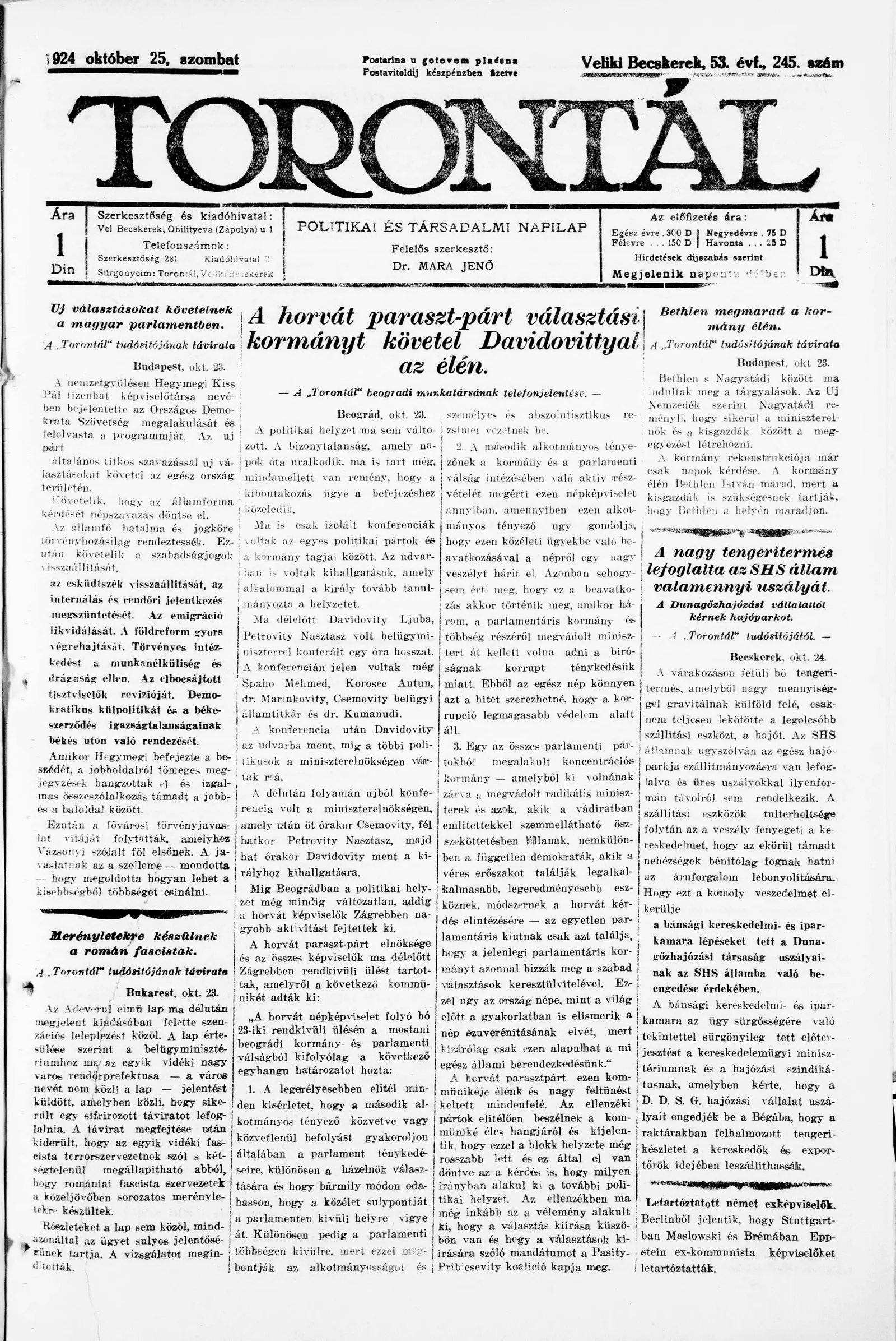 Torontál, 53. évf. 1924. október 25. 245. sz.