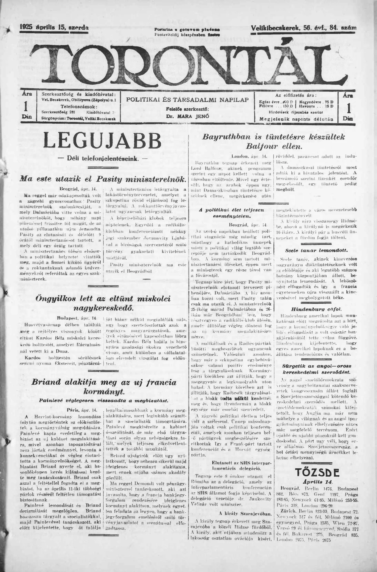 Torontál, 54. évf. 1925. április 15. 84. sz.