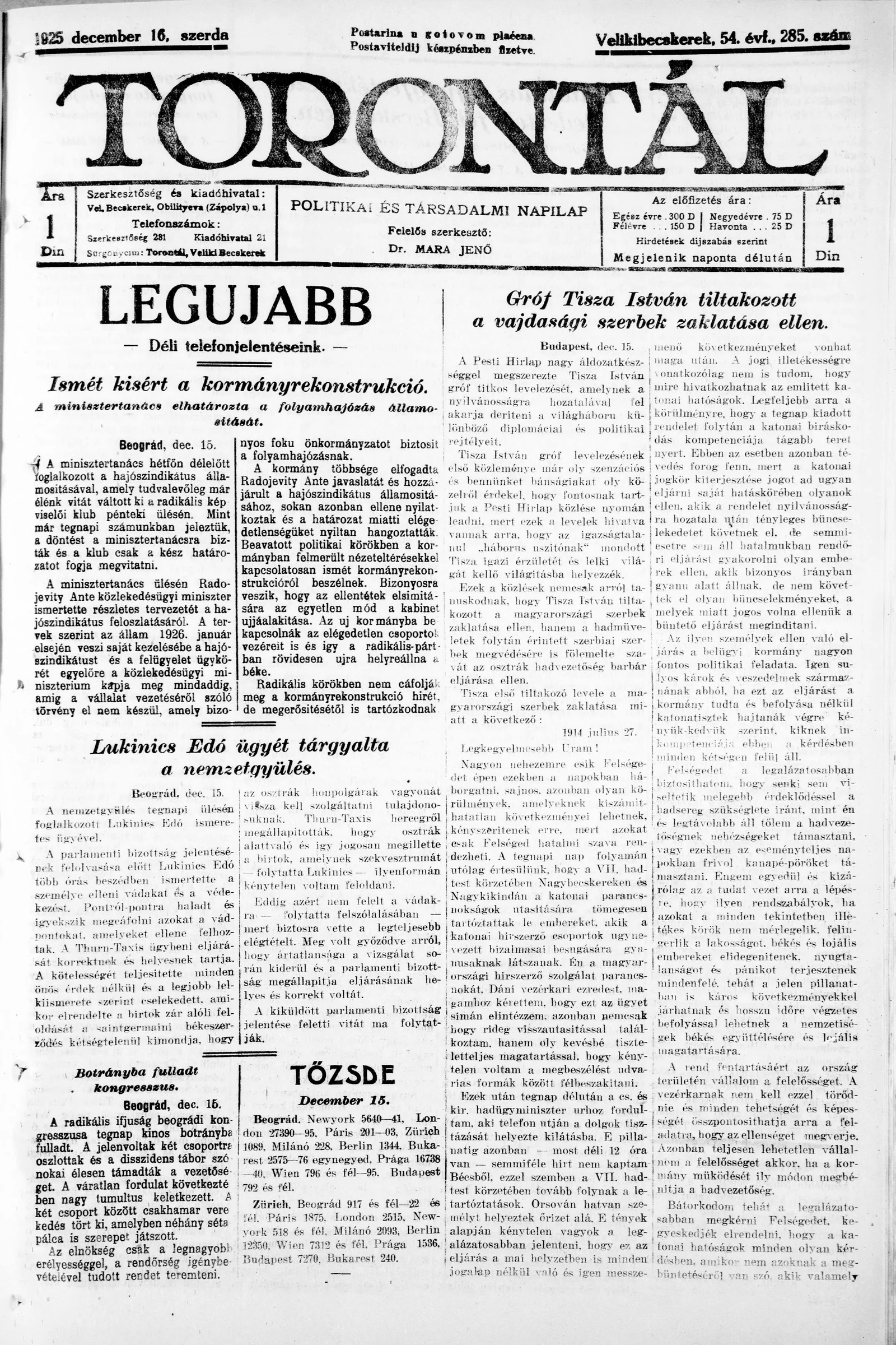 Torontál, 54. évf. 1925. december 16. 285. sz.