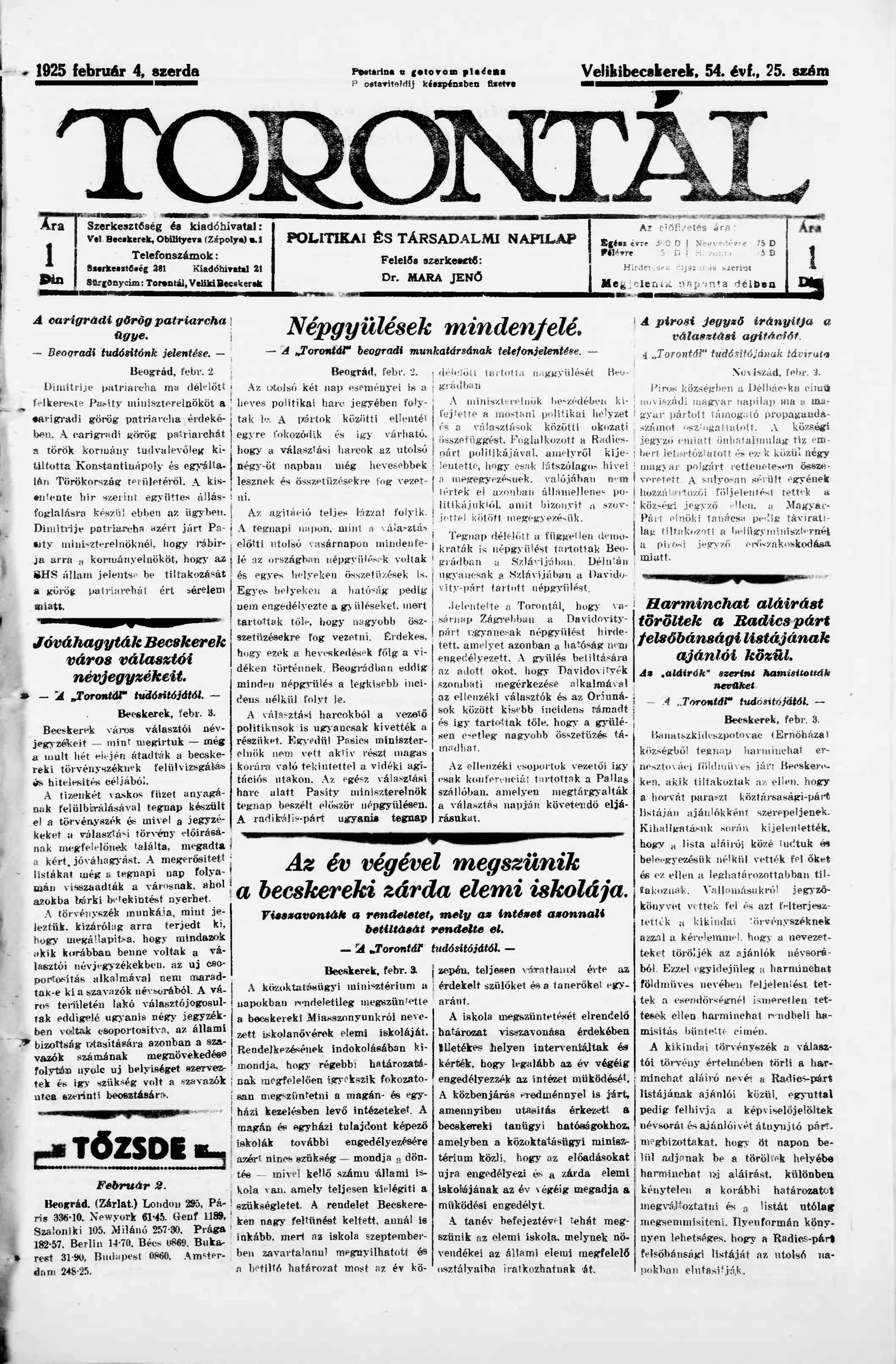 Torontál, 54. évf. 1925. február 4. 25. sz.