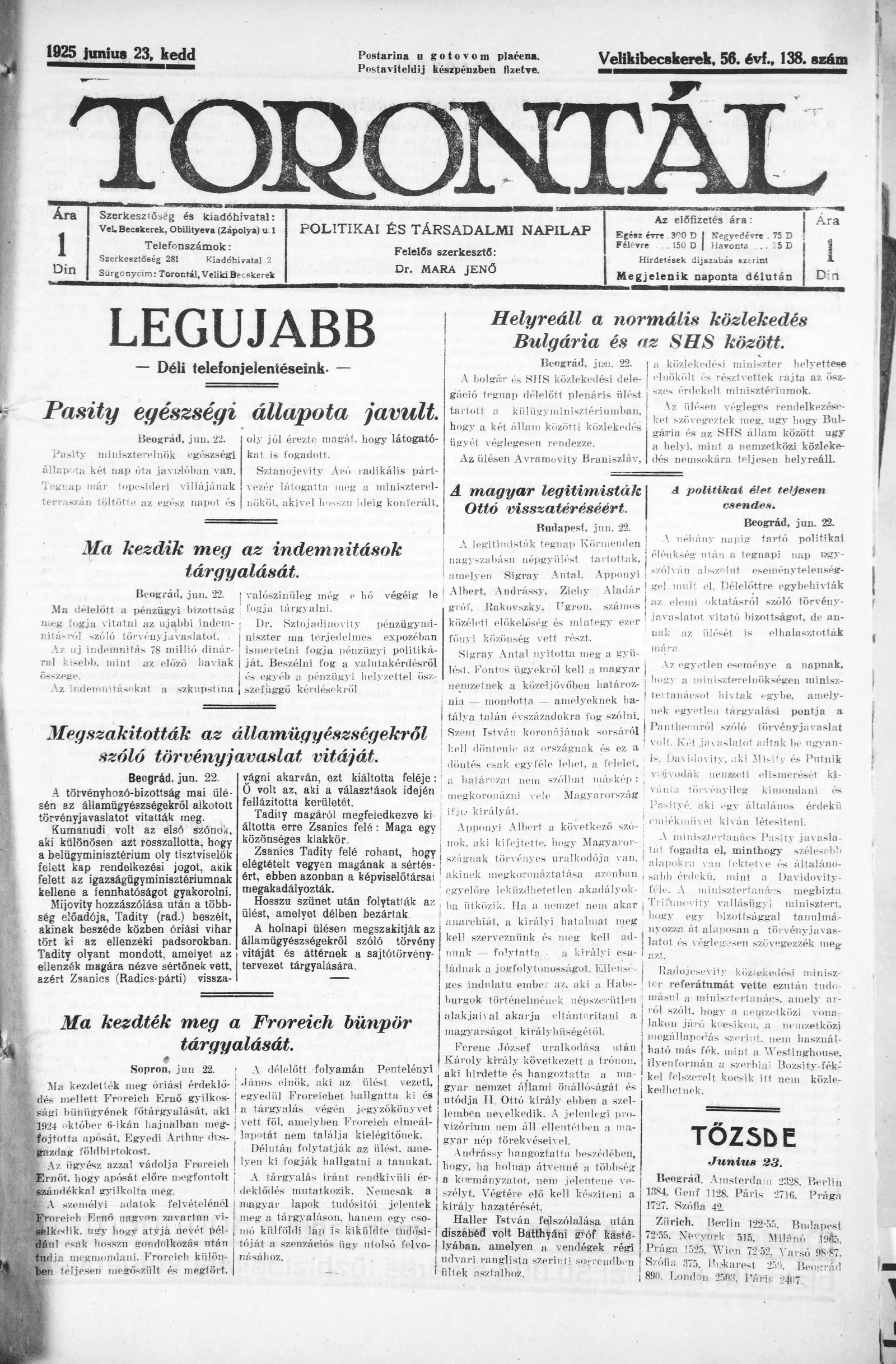 Torontál, 54. évf. 1925. június 23. 138. sz.