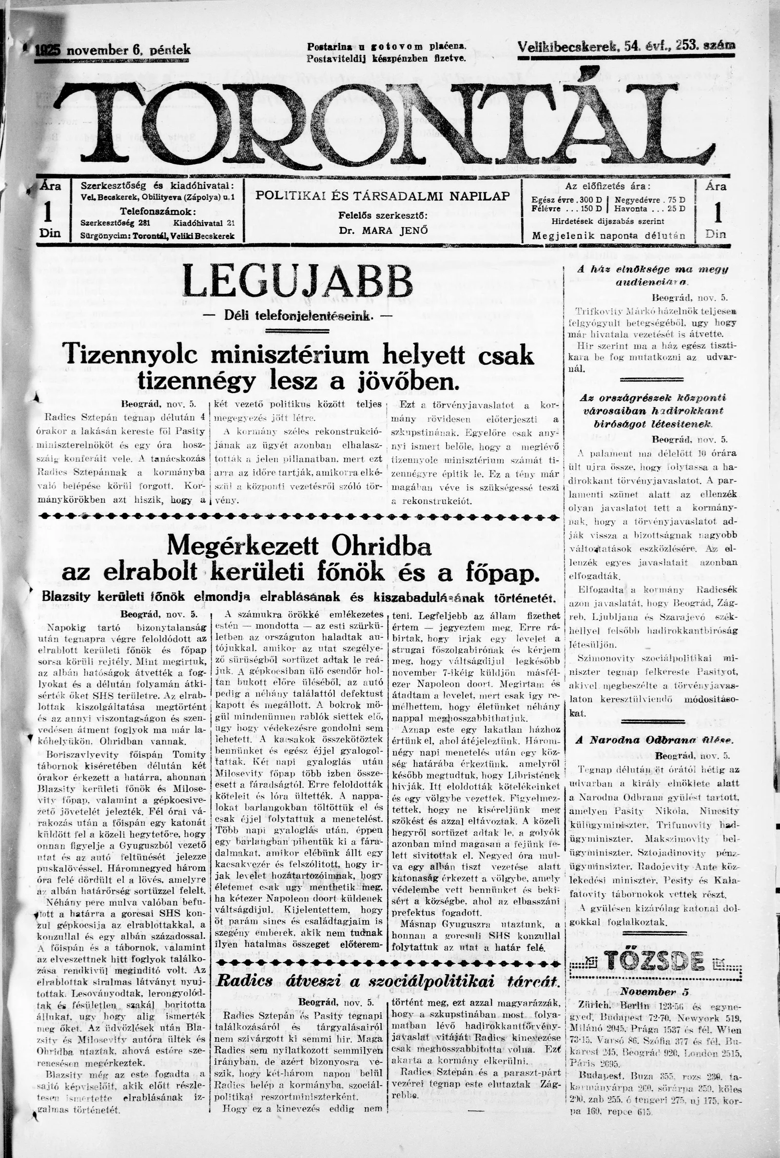 Torontál, 54. évf. 1925. november 6. 253. sz.