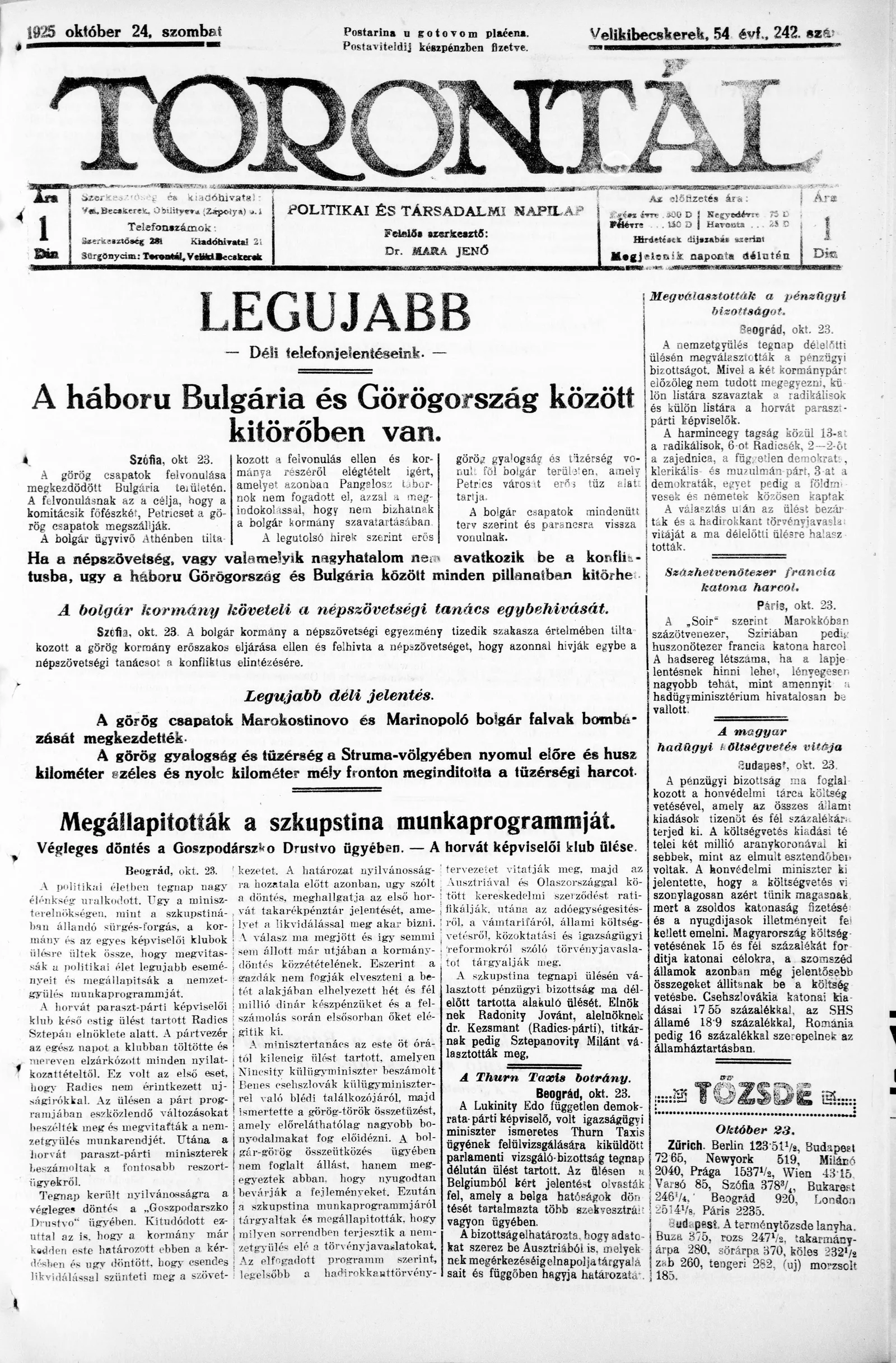 Torontál, 54. évf. 1925. október 24. 242. sz.