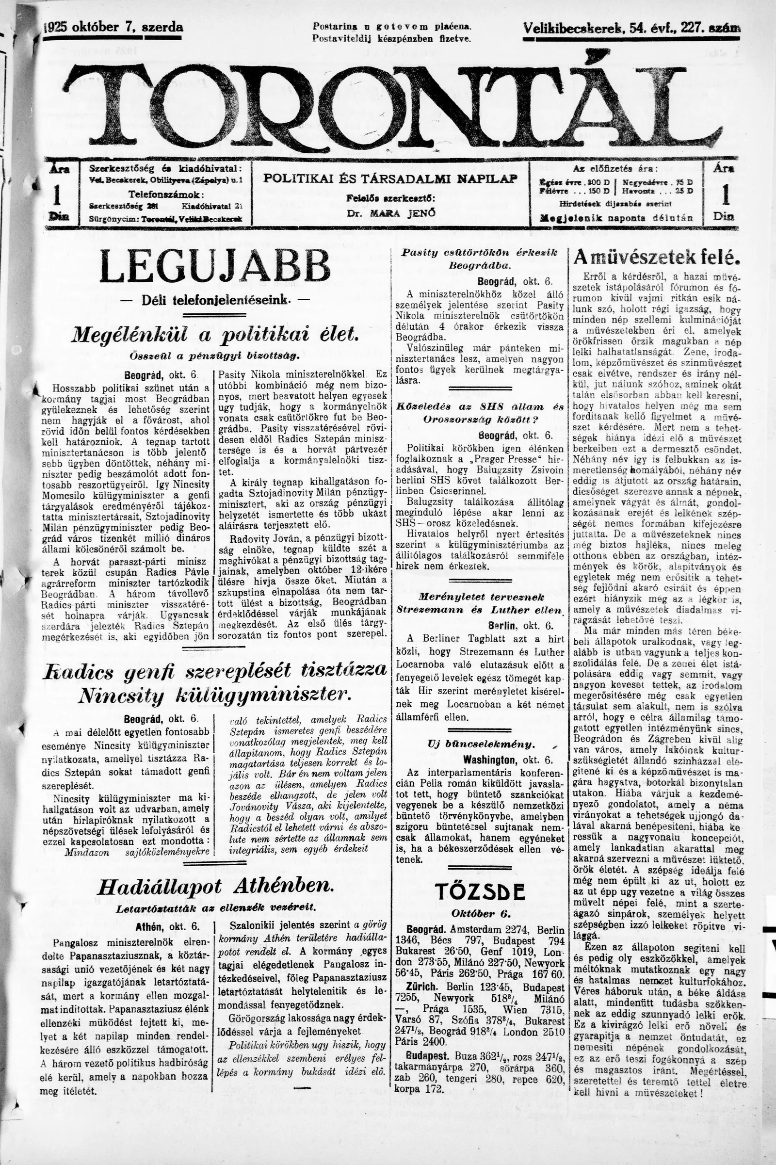 Torontál, 54. évf. 1925. október 7. 227. sz.