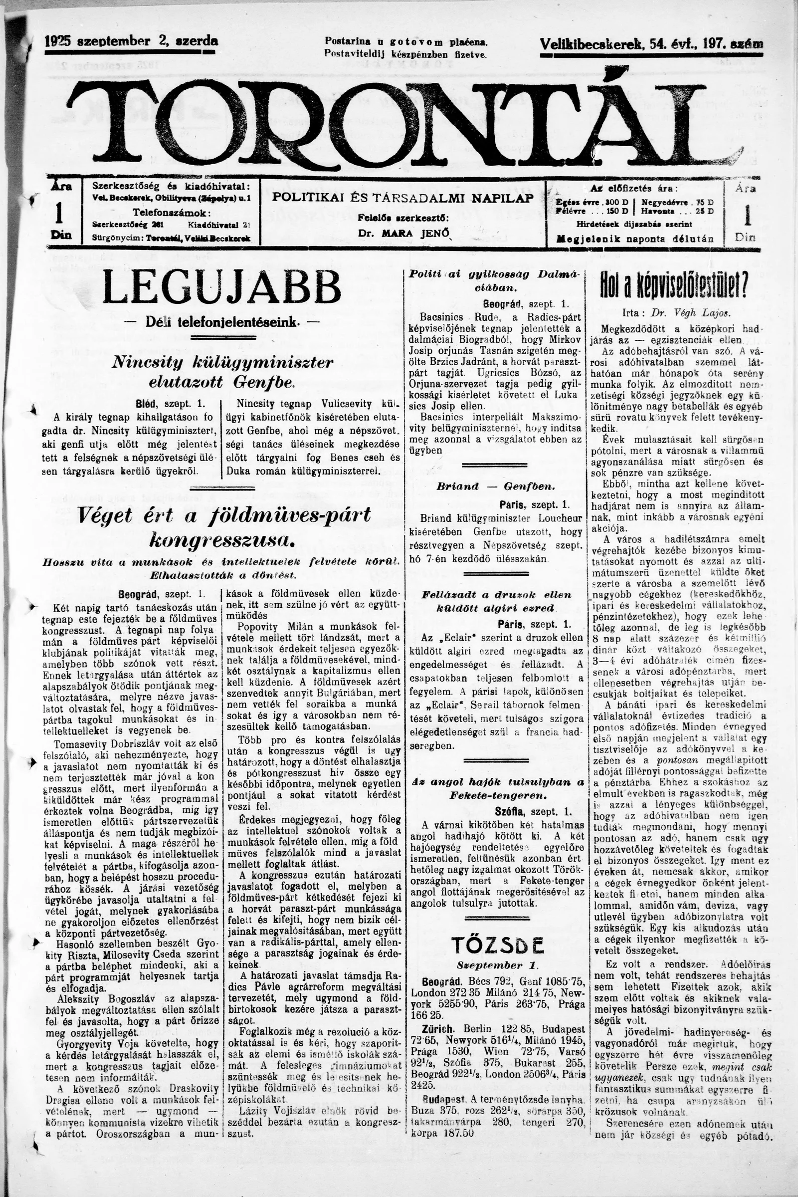 Torontál, 54. évf. 1925. szeptember 2. 197. sz.