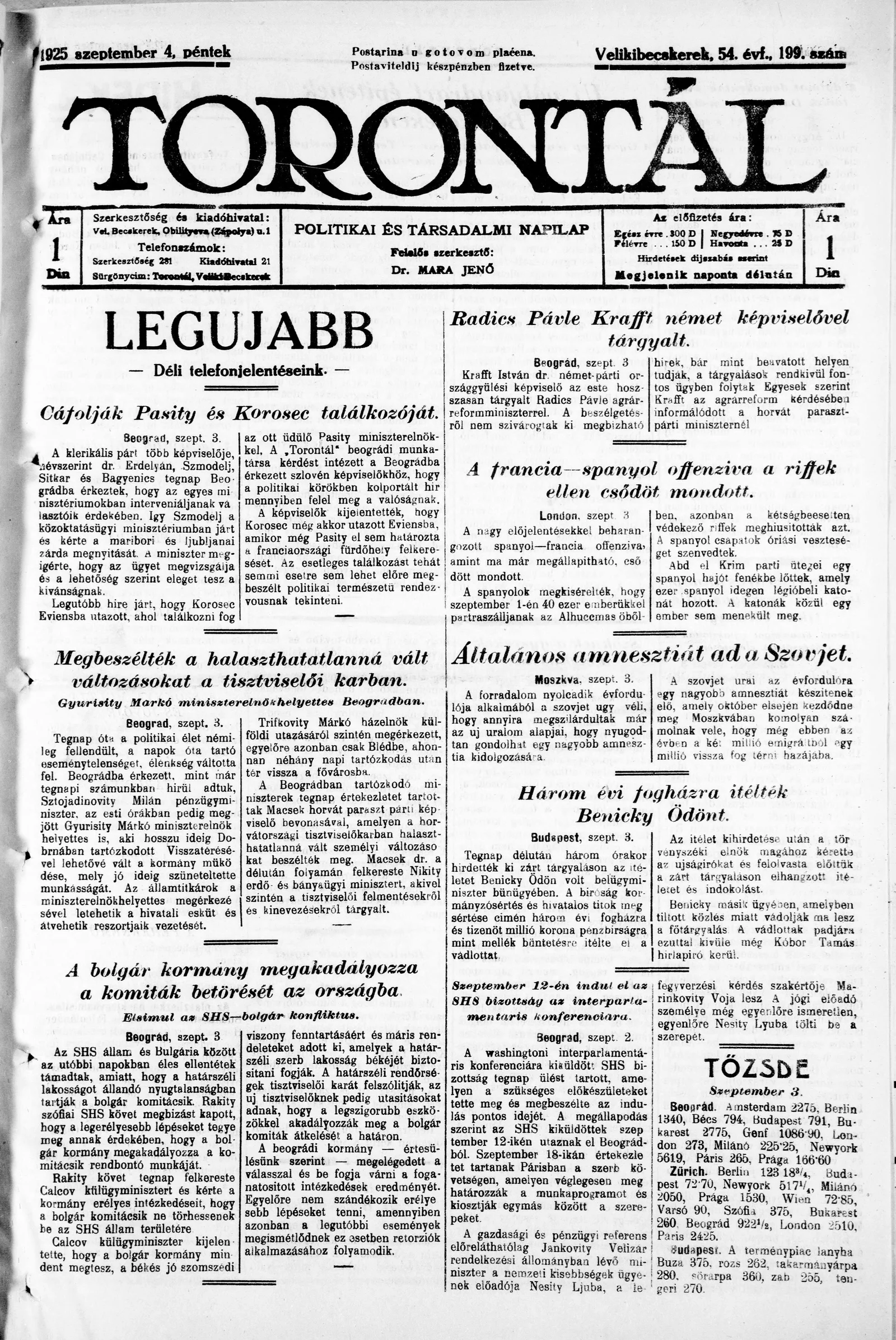 Torontál, 54. évf. 1925. szeptember 4. 199. sz.