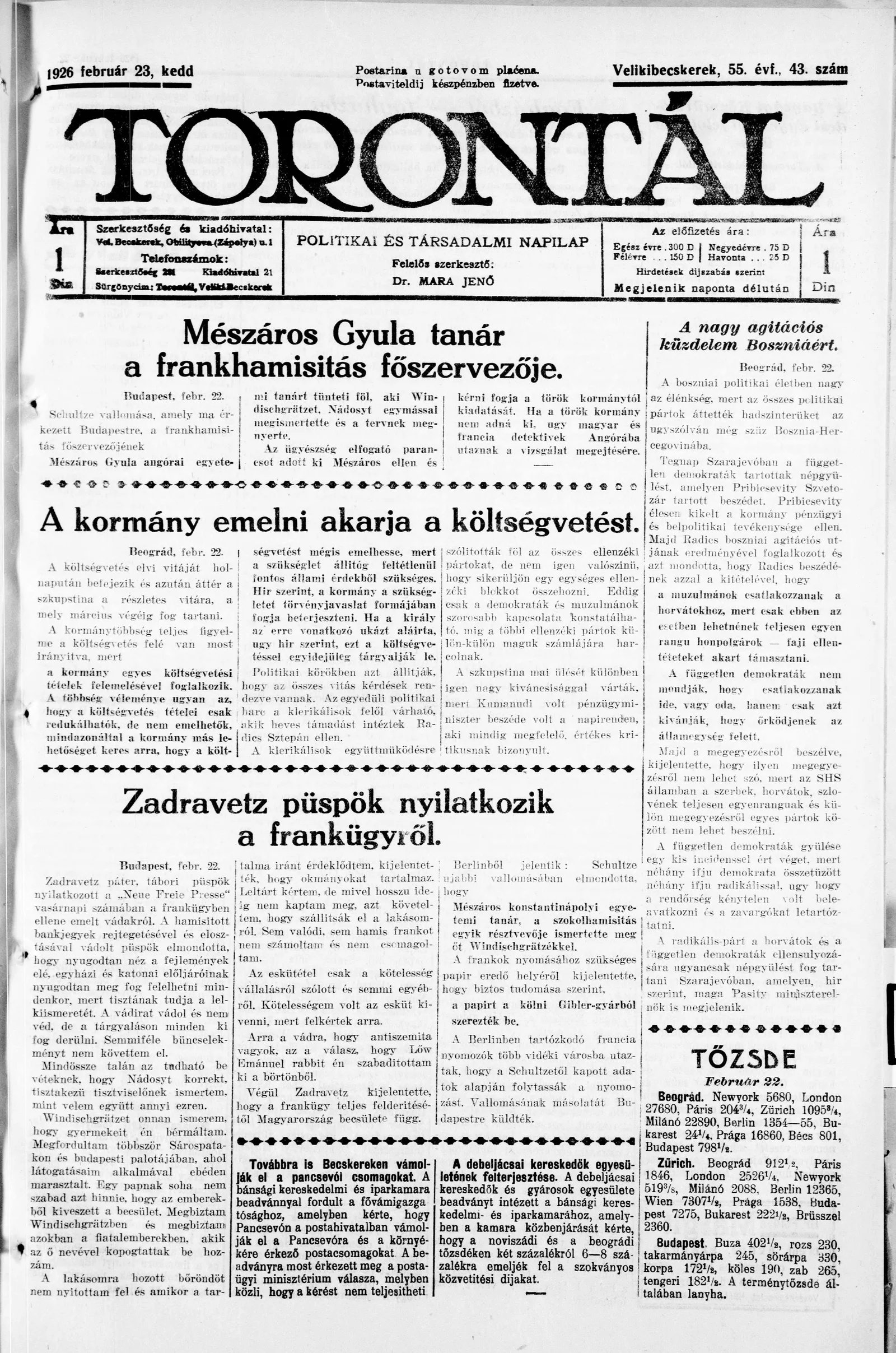 Torontál, 55. évf. 1926. február 23. 43. sz.