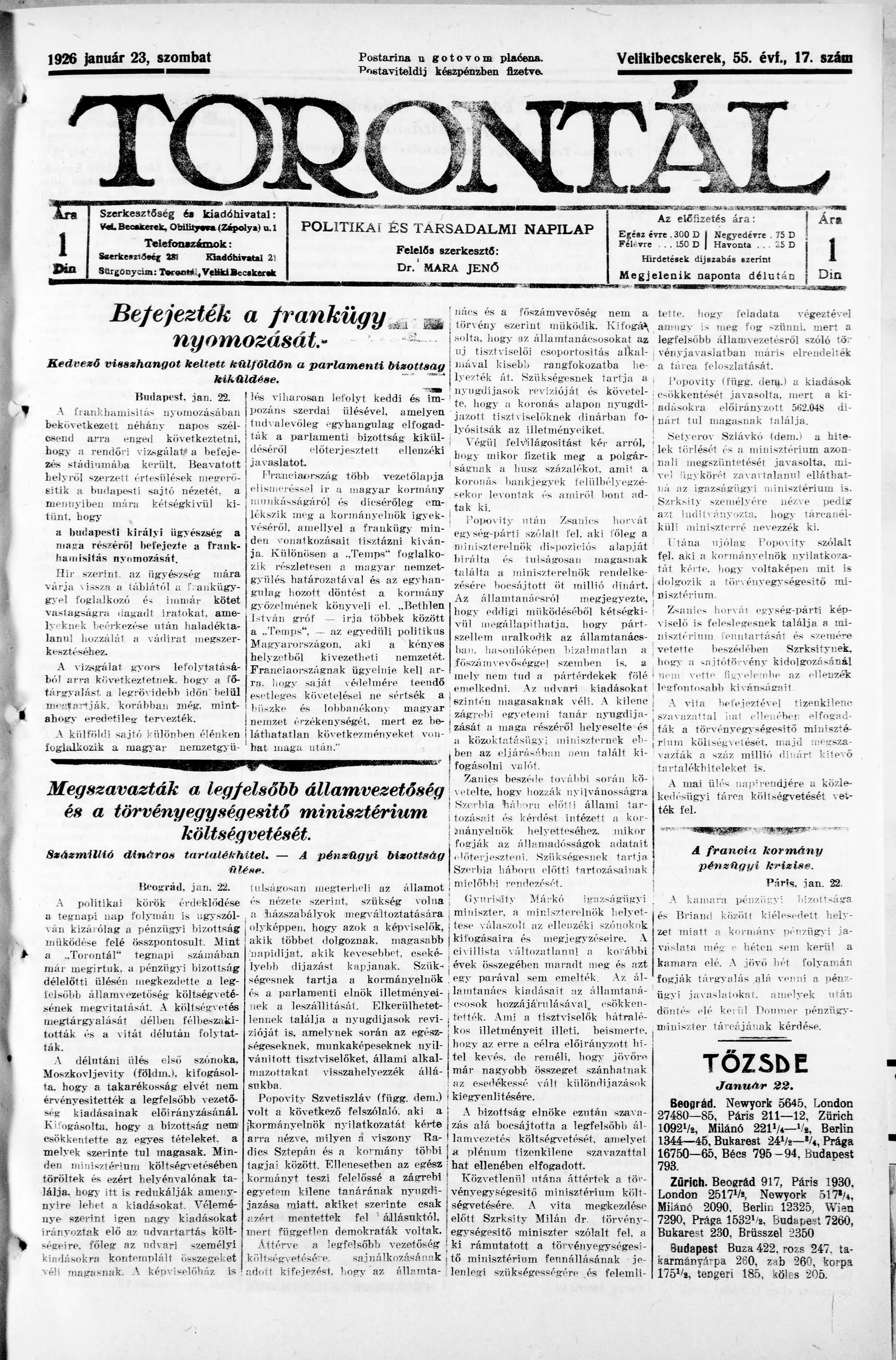 Torontál, 55. évf. 1926. január 23. 17. sz.