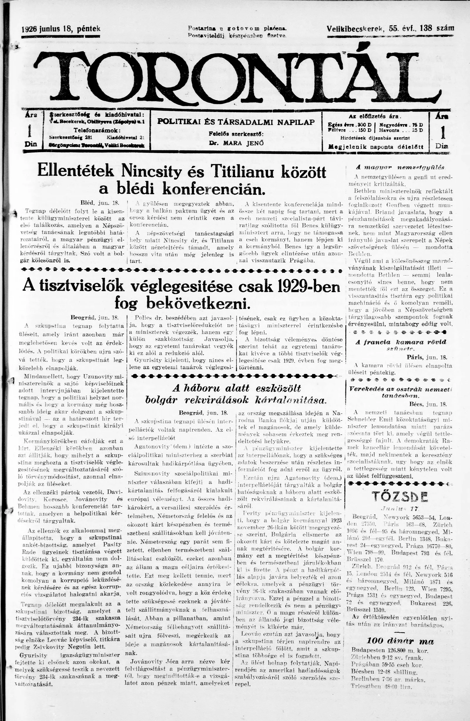 Torontál, 55. évf. 1926. június 18. 138. sz.