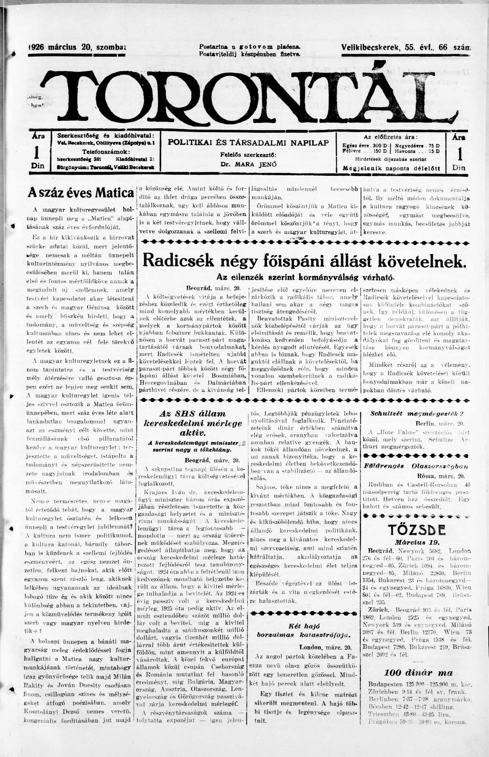 Torontál, 55. évf. 1926. március 20. 66. sz.