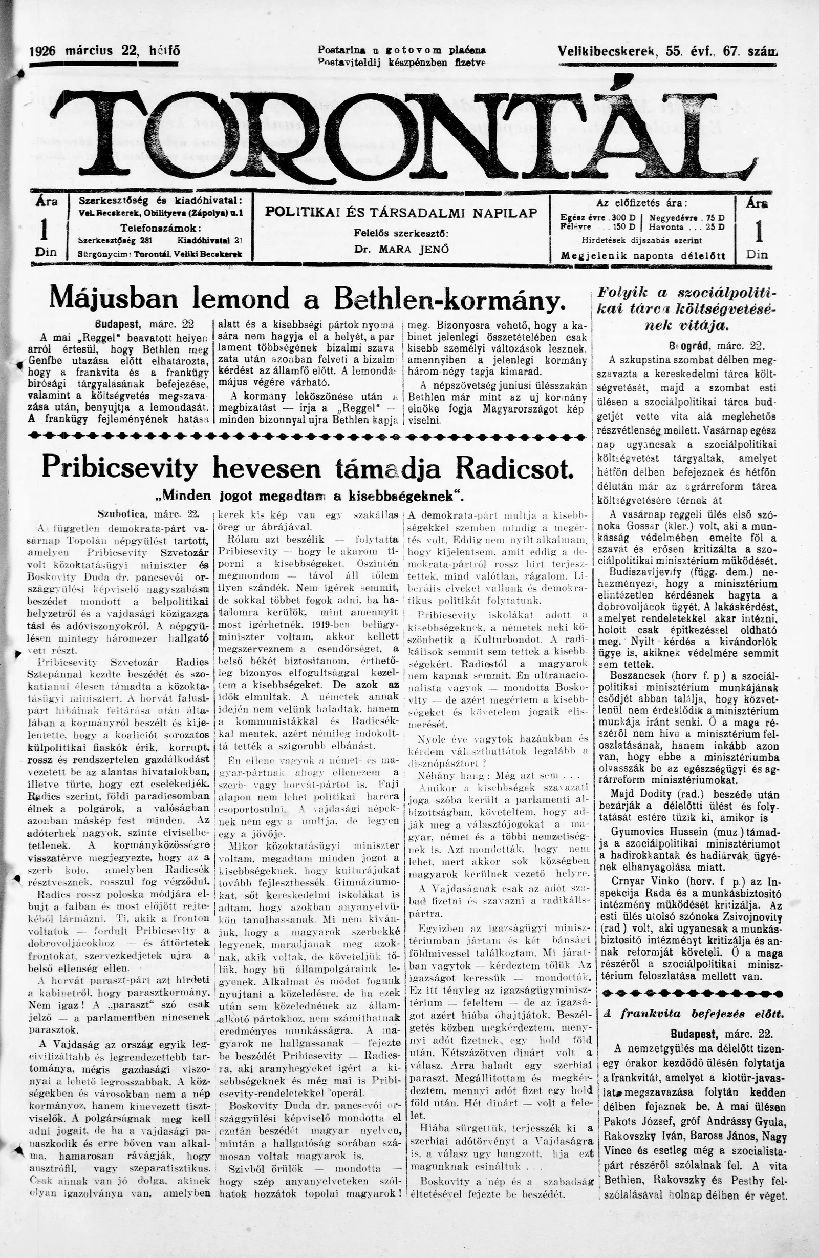 Torontál, 55. évf. 1926. március 22. 67. sz.