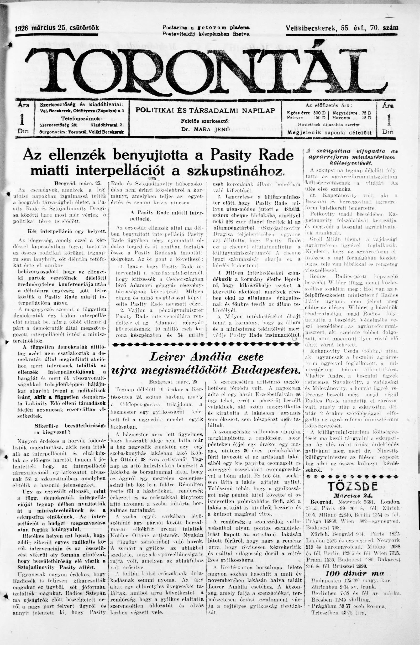 Torontál, 55. évf. 1926. március 25. 70. sz.