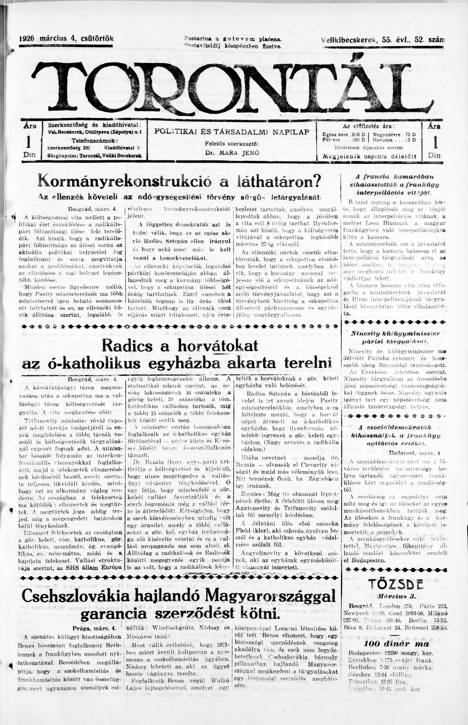Torontál, 55. évf. 1926. március 4. 52. sz.