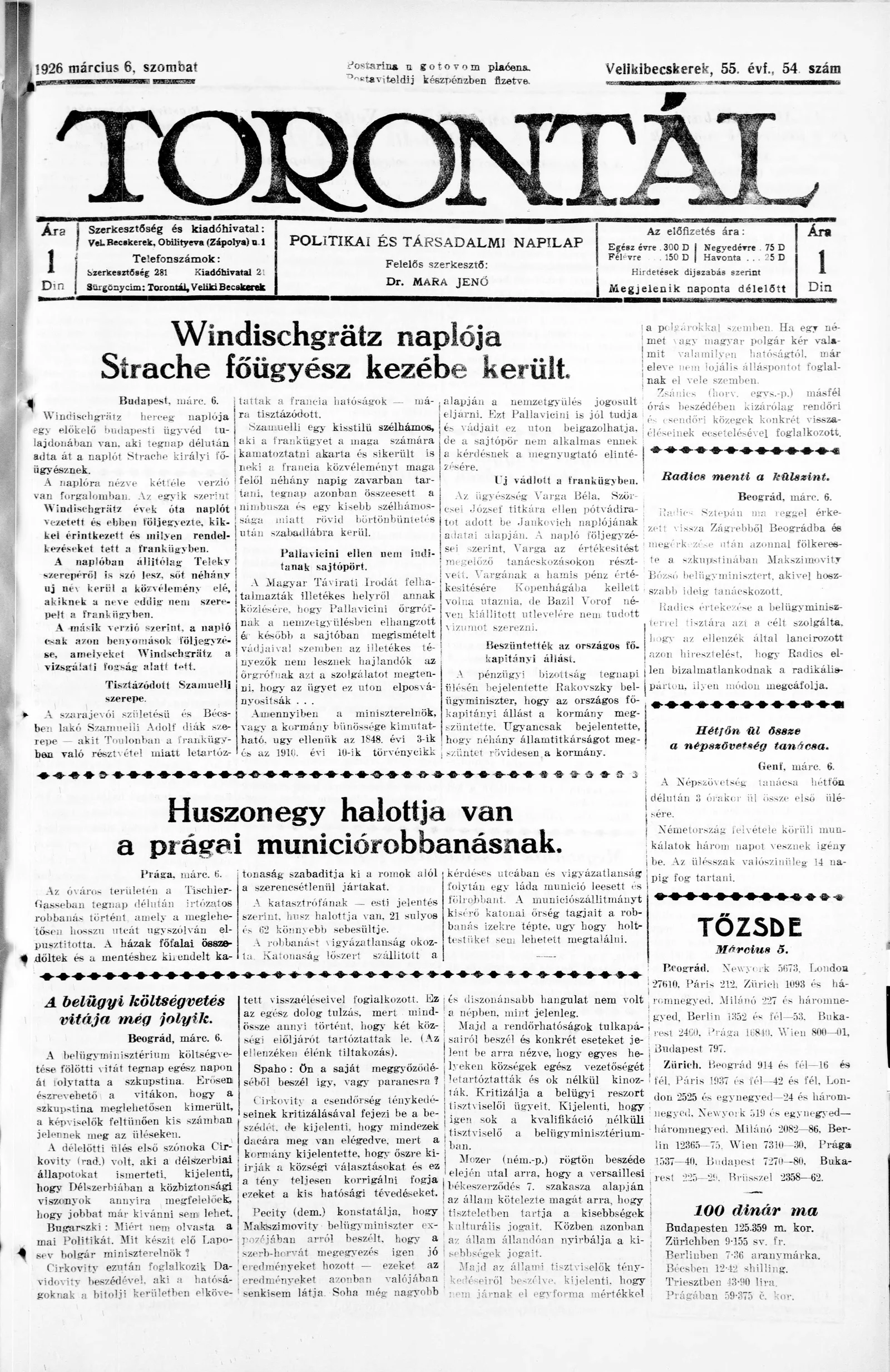 Torontál, 55. évf. 1926. március 6. 54. sz.