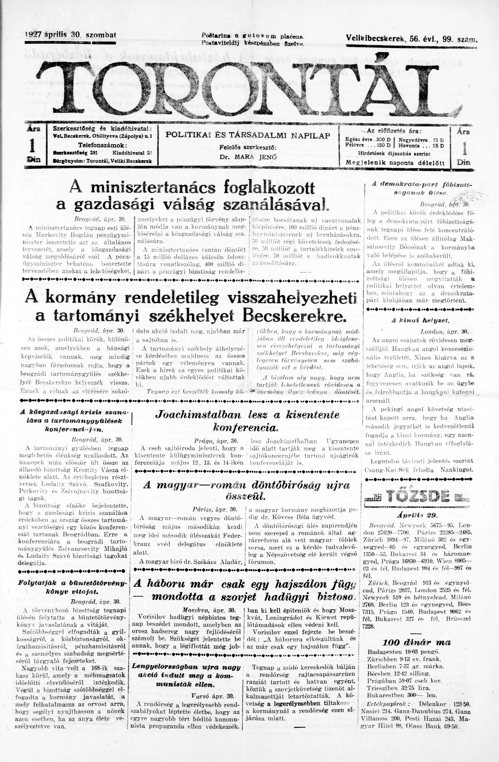 Torontál, 56. évf. 1927. április 30. 99. sz.