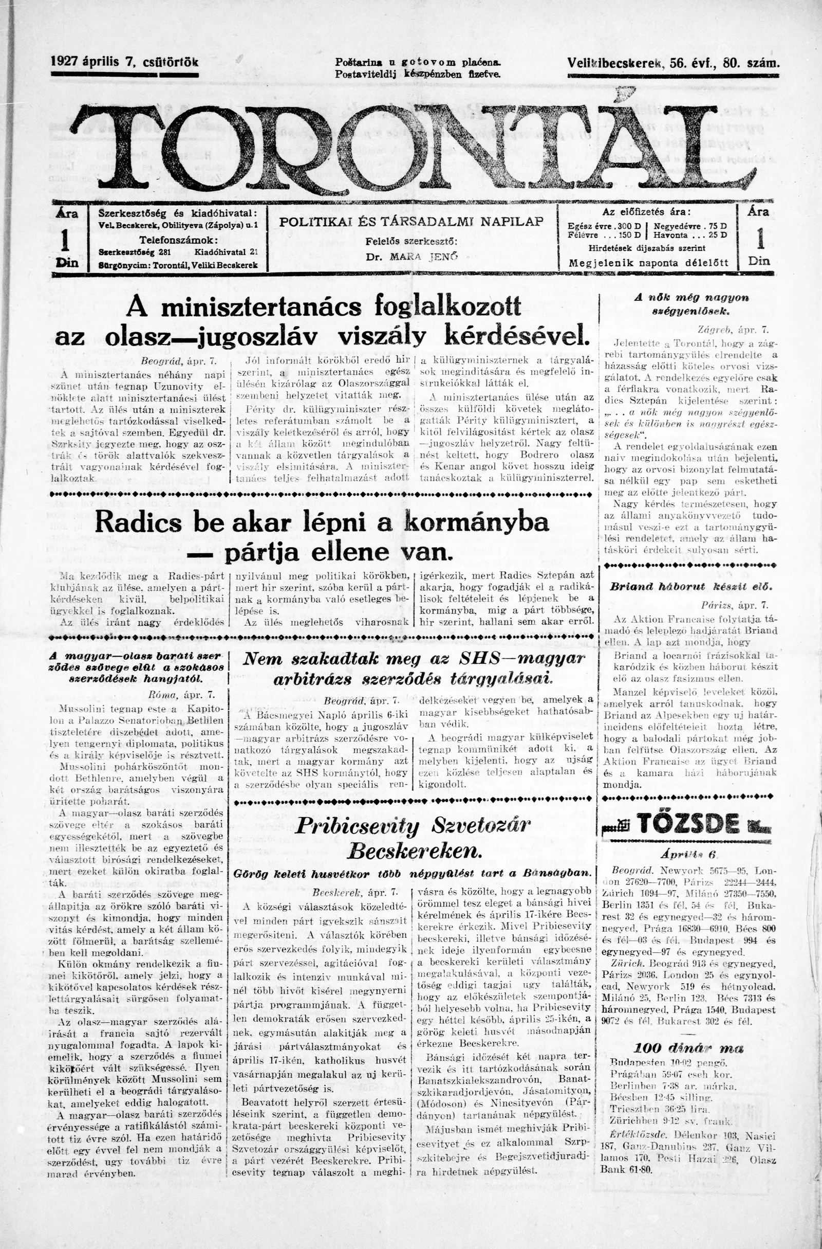 Torontál, 56. évf. 1927. április 7. 80. sz.