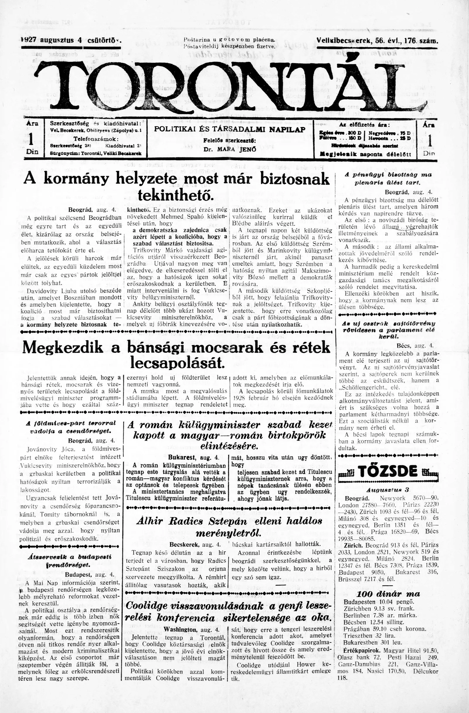 Torontál, 56. évf. 1927. augusztus 4. 176. sz.