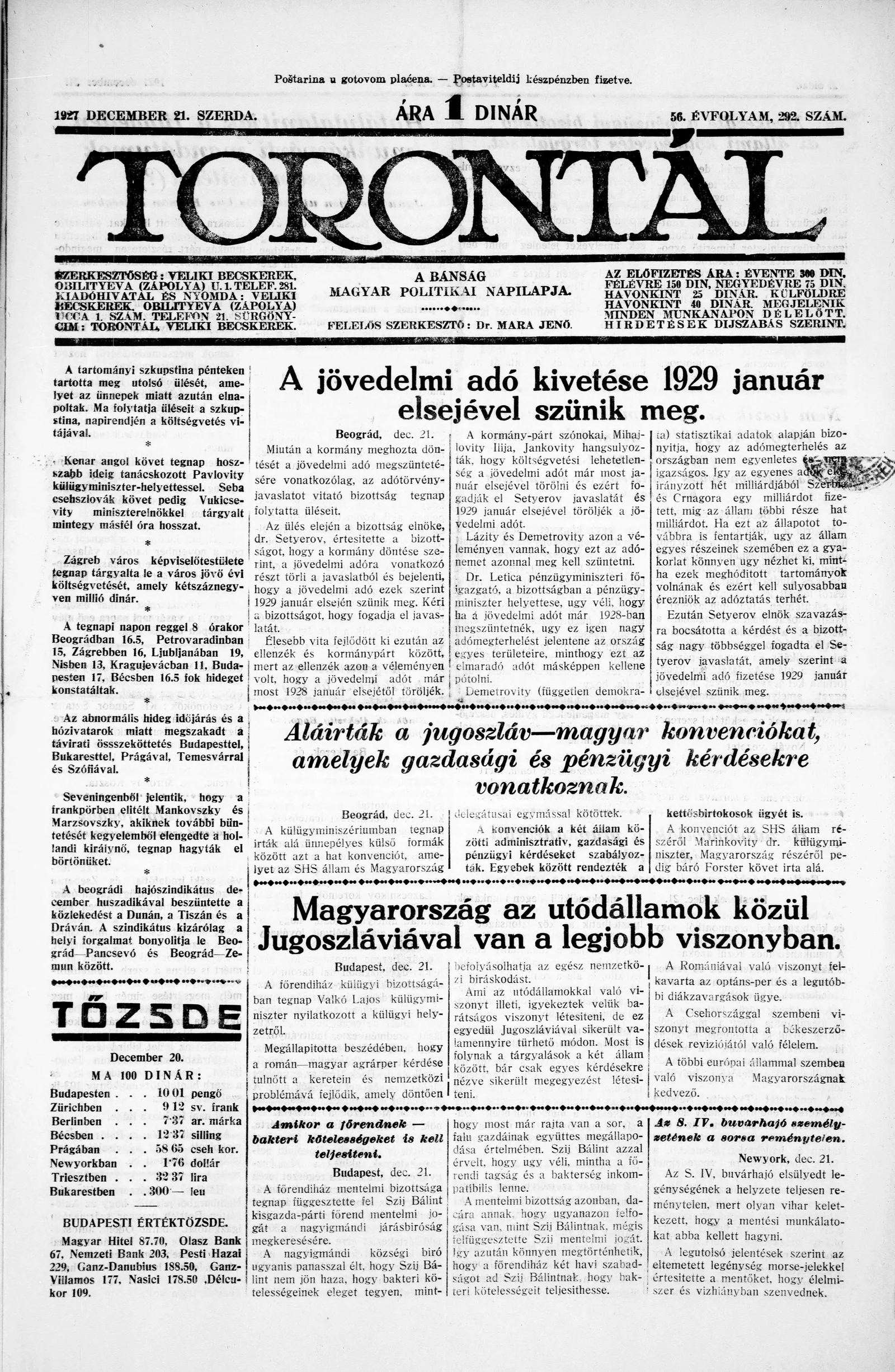 Torontál, 56. évf. 1927. december 21. 292. sz.