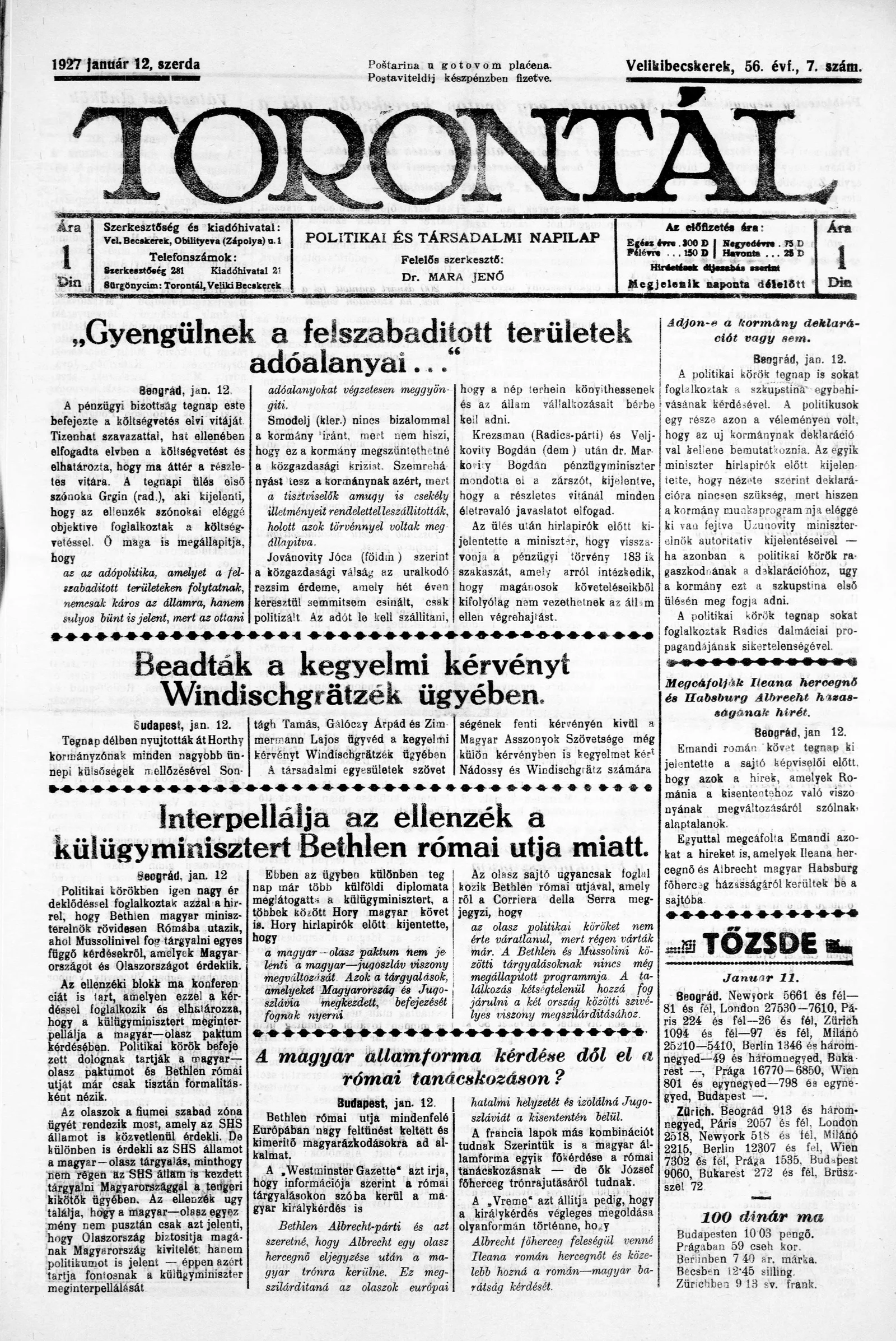 Torontál, 56. évf. 1927. január 12. 7. sz.