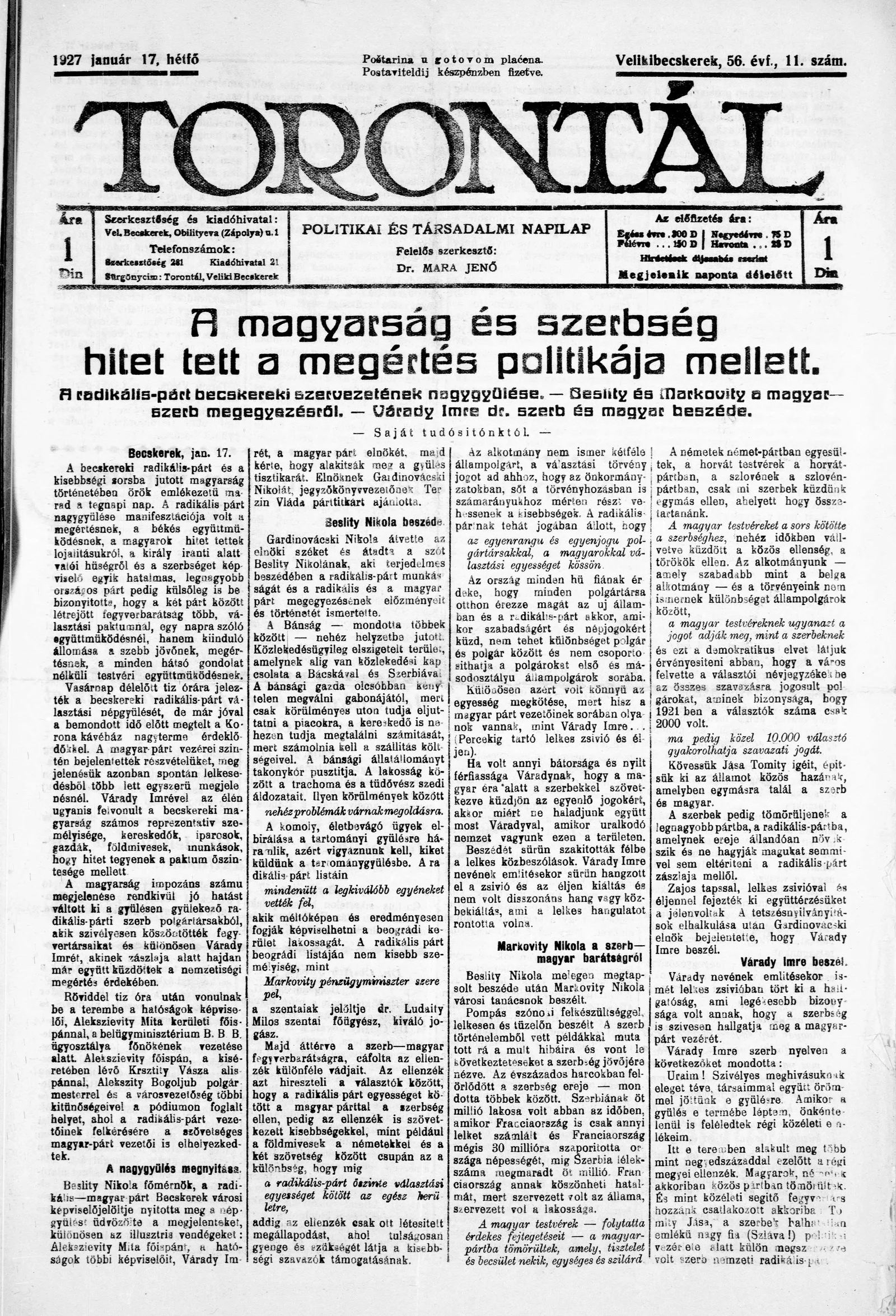 Torontál, 56. évf. 1927. január 17. 11. sz.