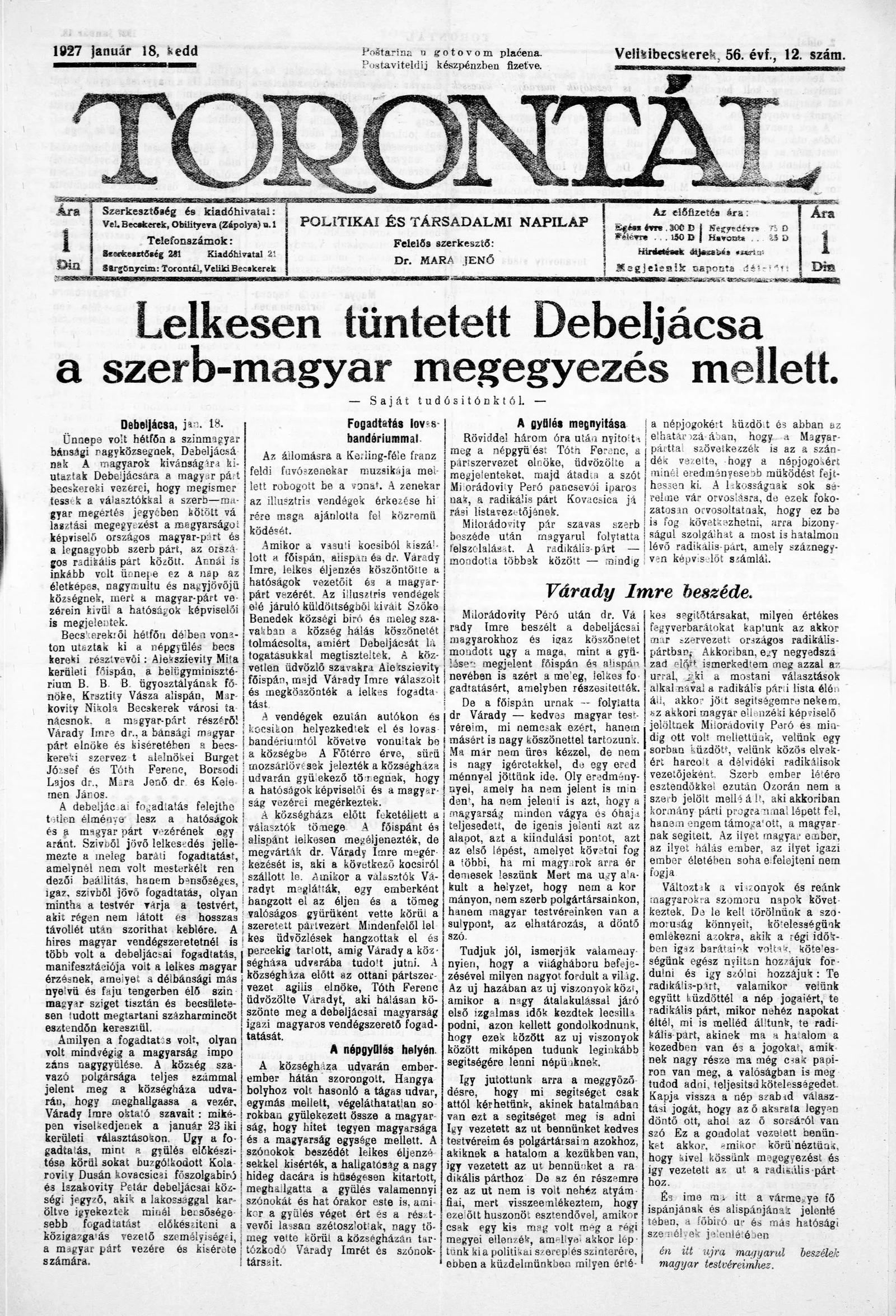 Torontál, 56. évf. 1927. január 18. 12. sz.