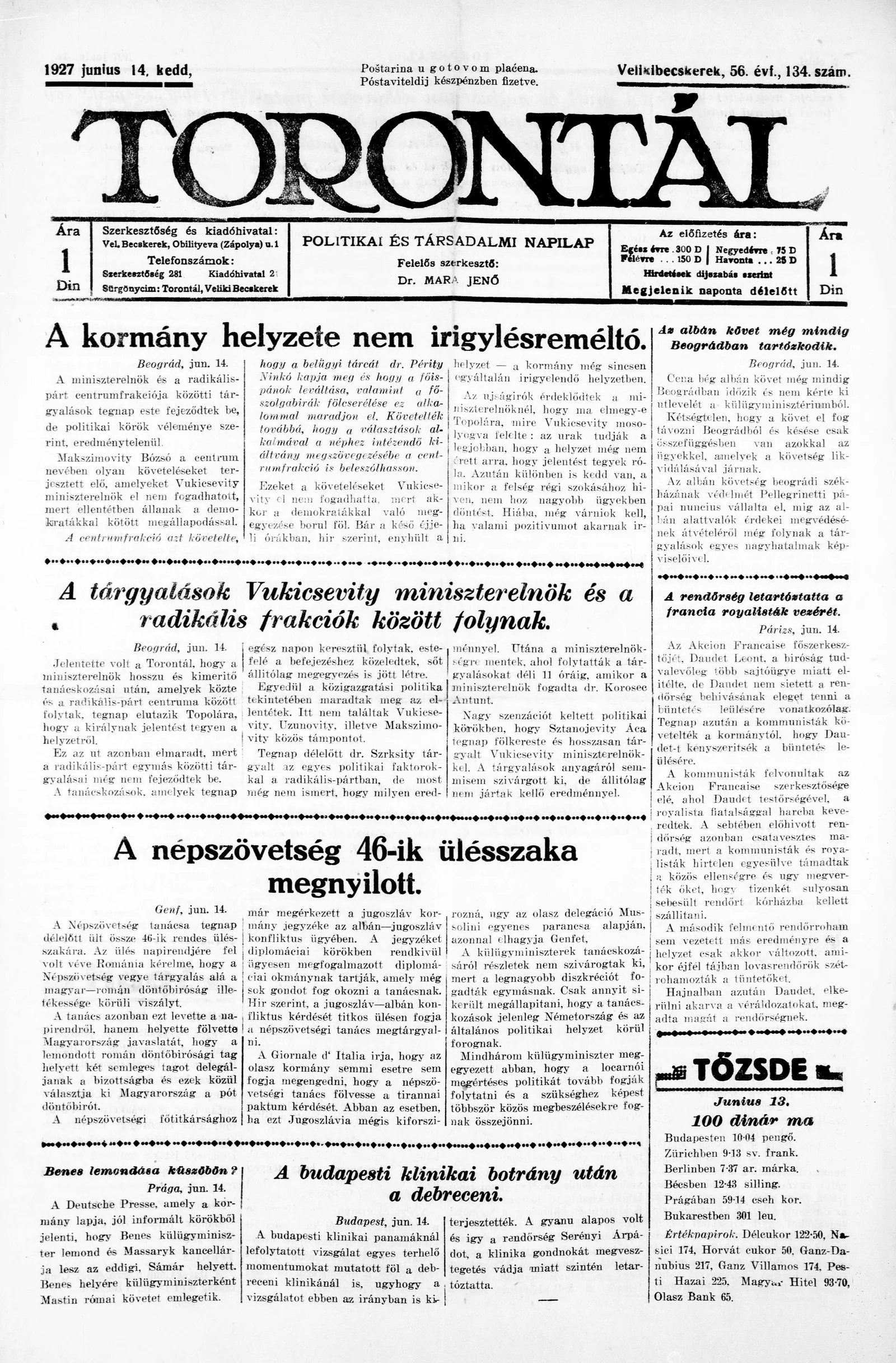 Torontál, 56. évf. 1927. június 14. 134. sz.