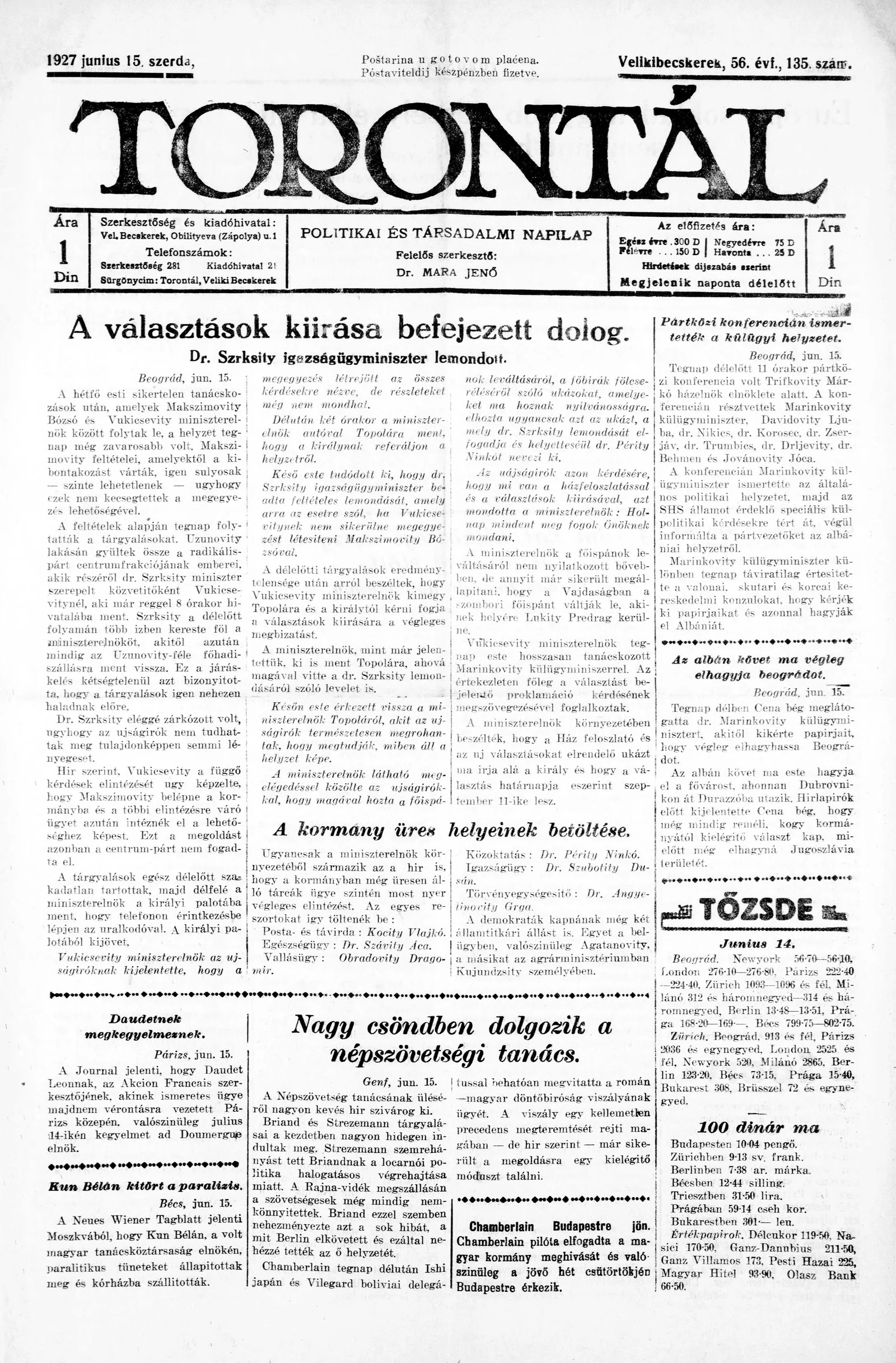 Torontál, 56. évf. 1927. június 15. 135. sz.