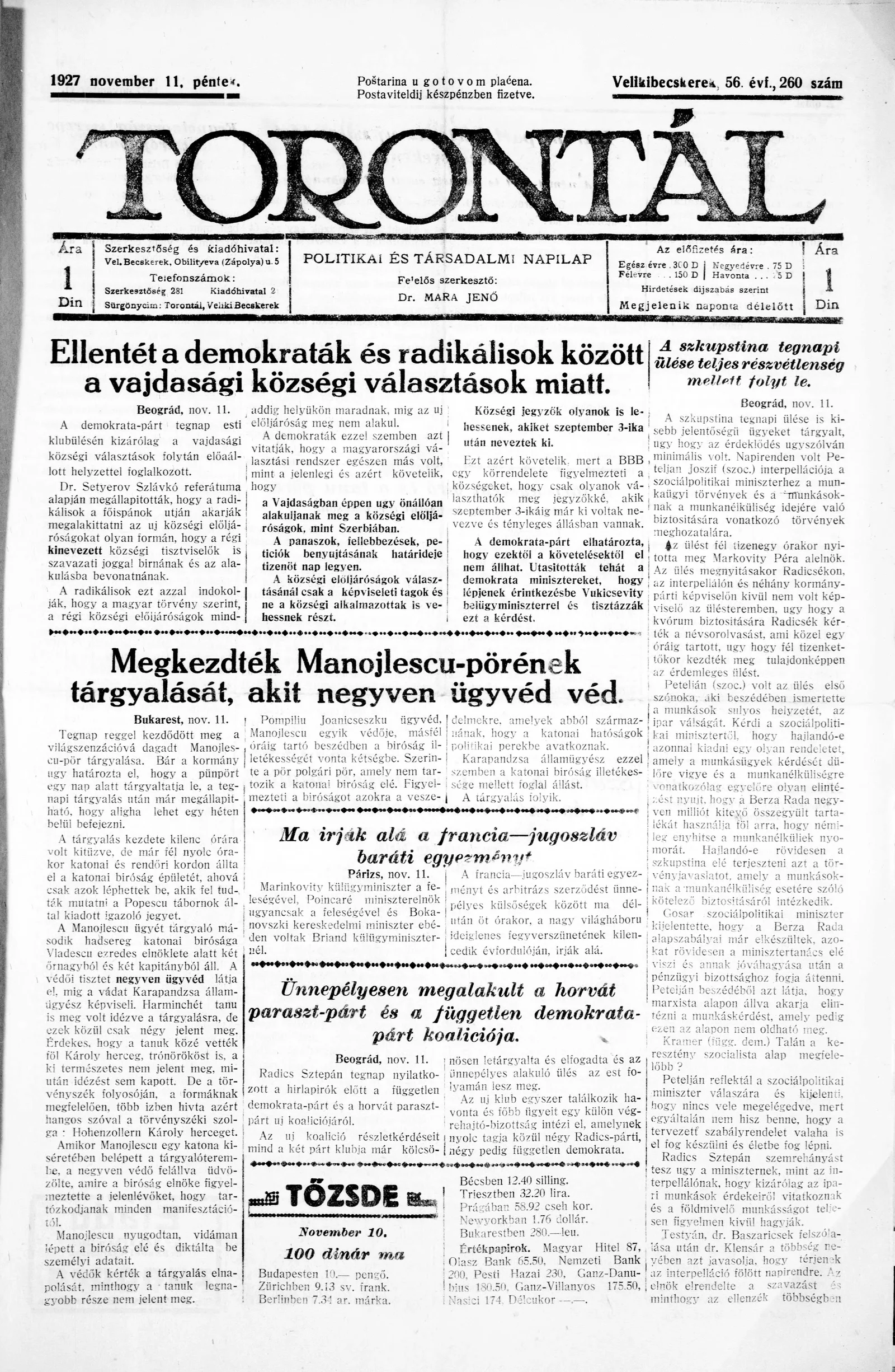Torontál, 56. évf. 1927. november 11. 260. sz.