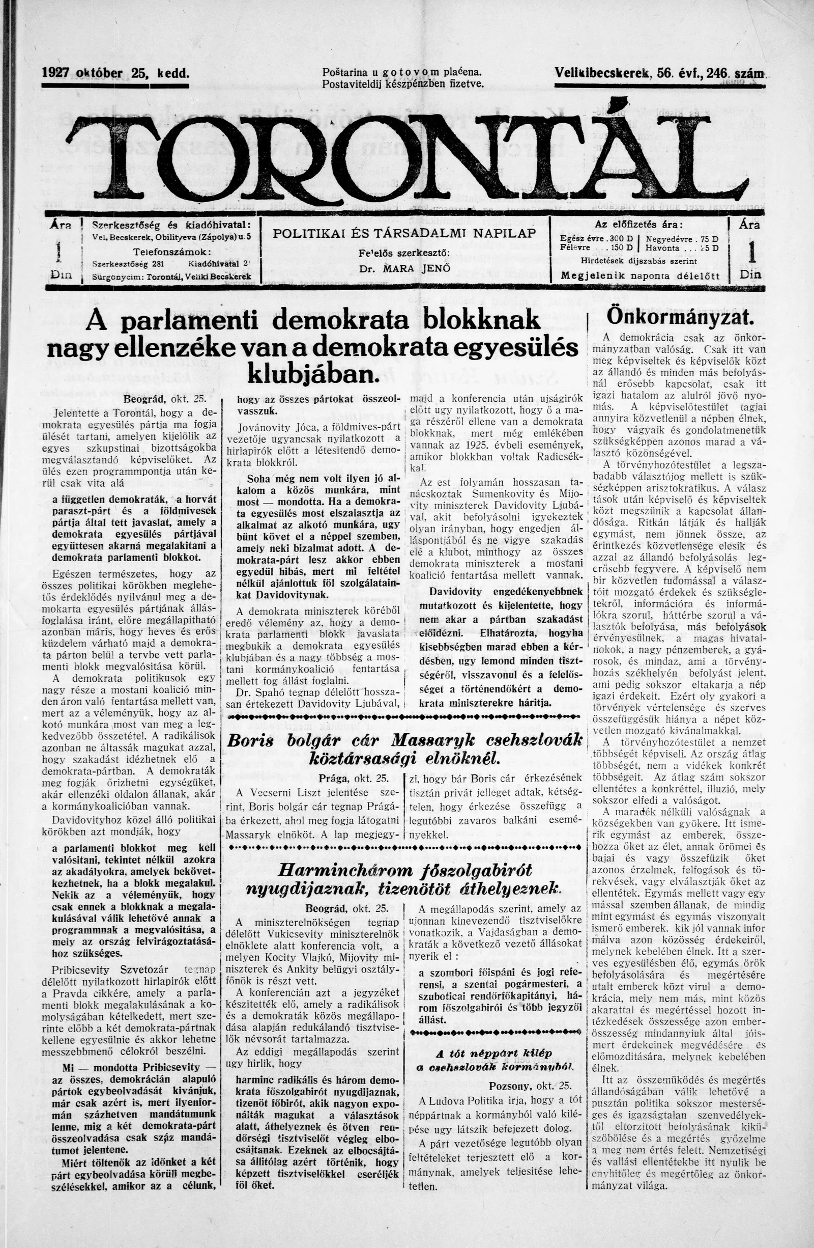 Torontál, 56. évf. 1927. október 25. 246. sz.