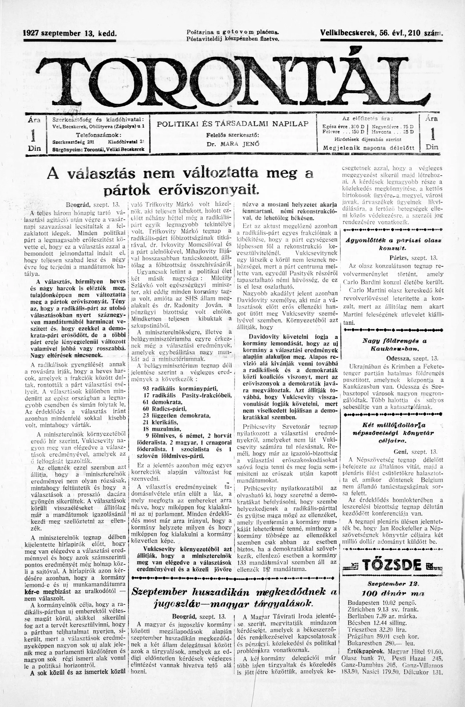 Torontál, 56. évf. 1927. szeptember 13. 210. sz.