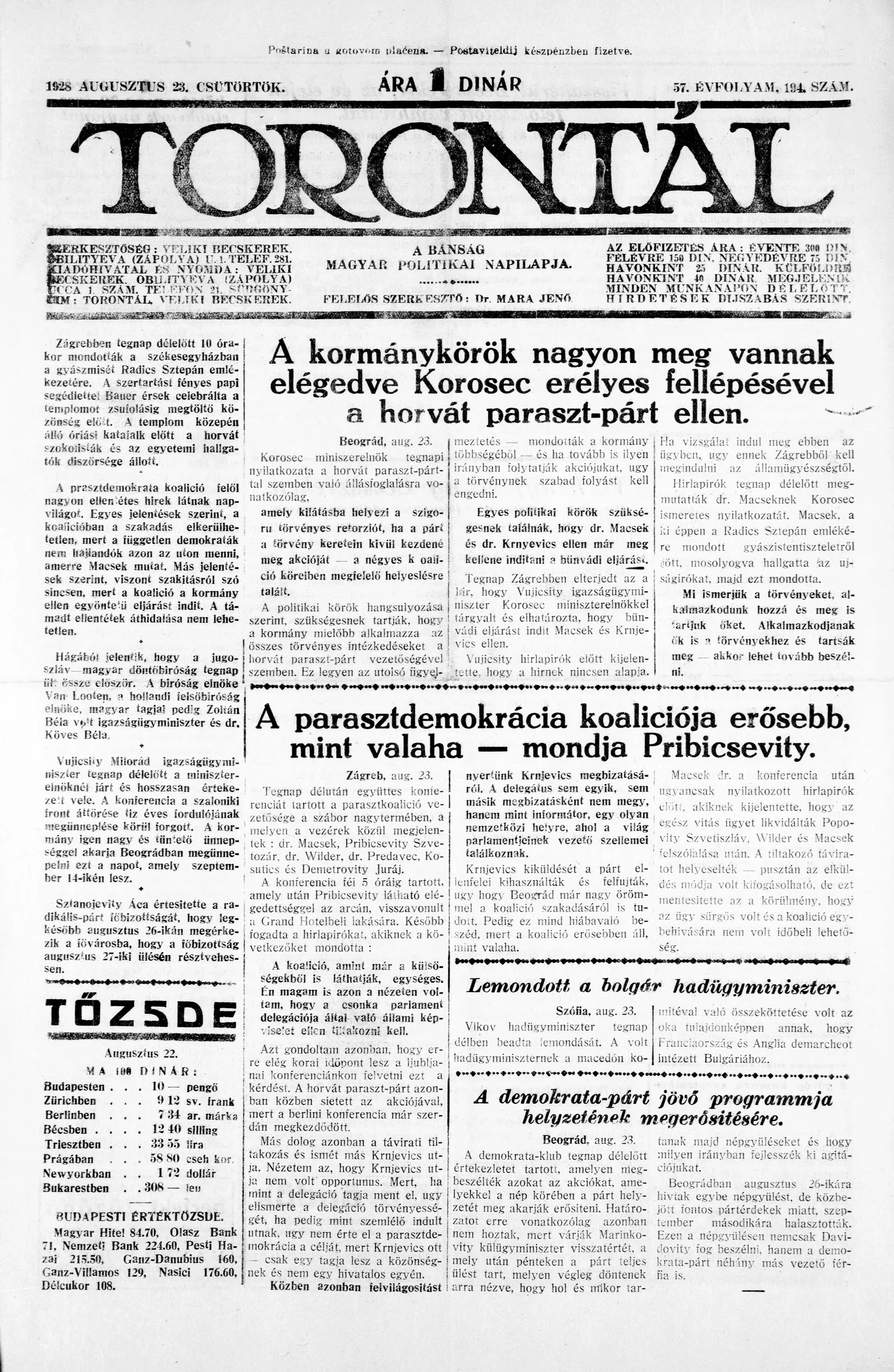 Torontál, 57. évf. 1928. augusztus 23. 194. sz.