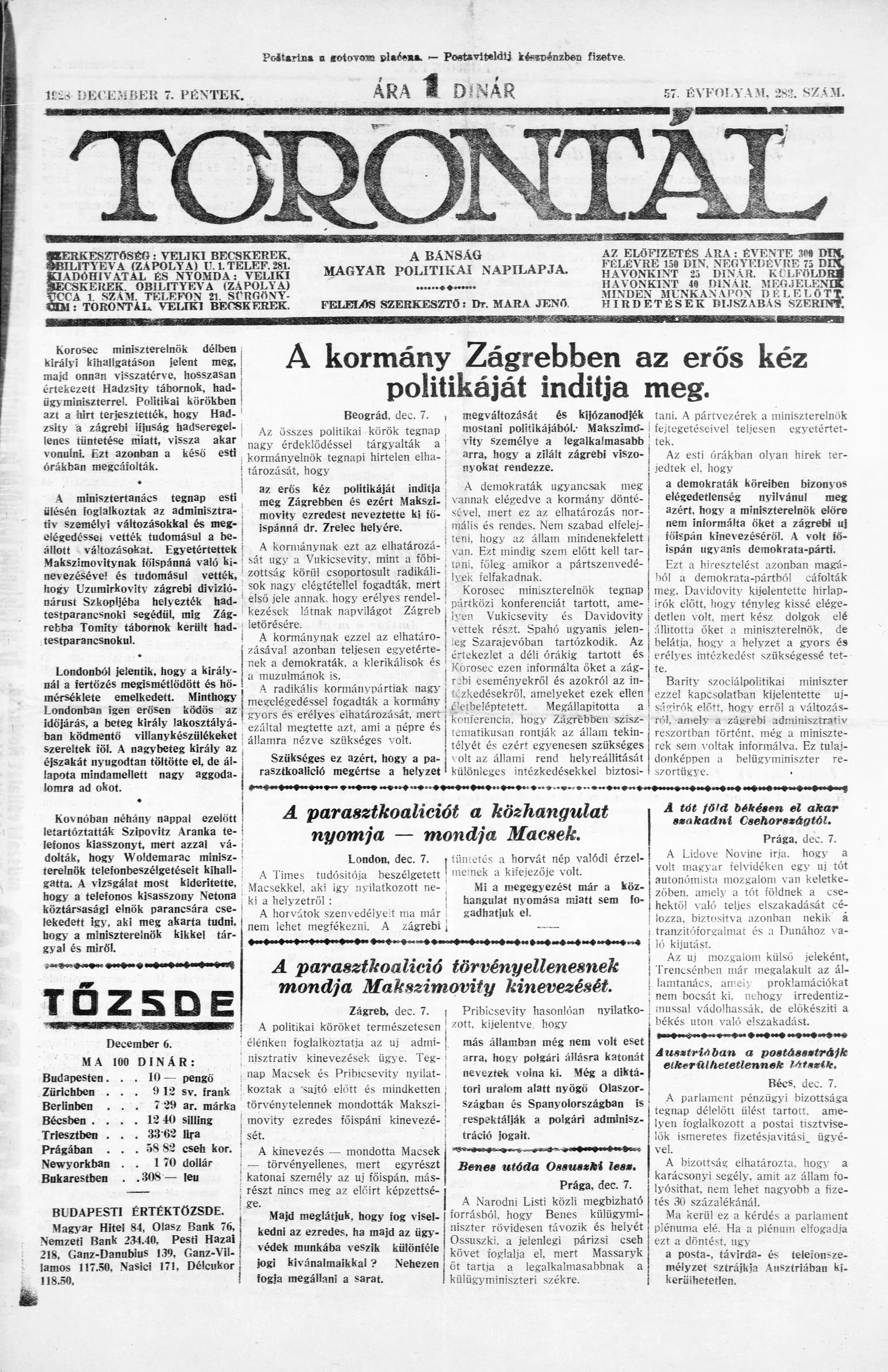 Torontál, 57. évf. 1928. december 7. 283. sz.