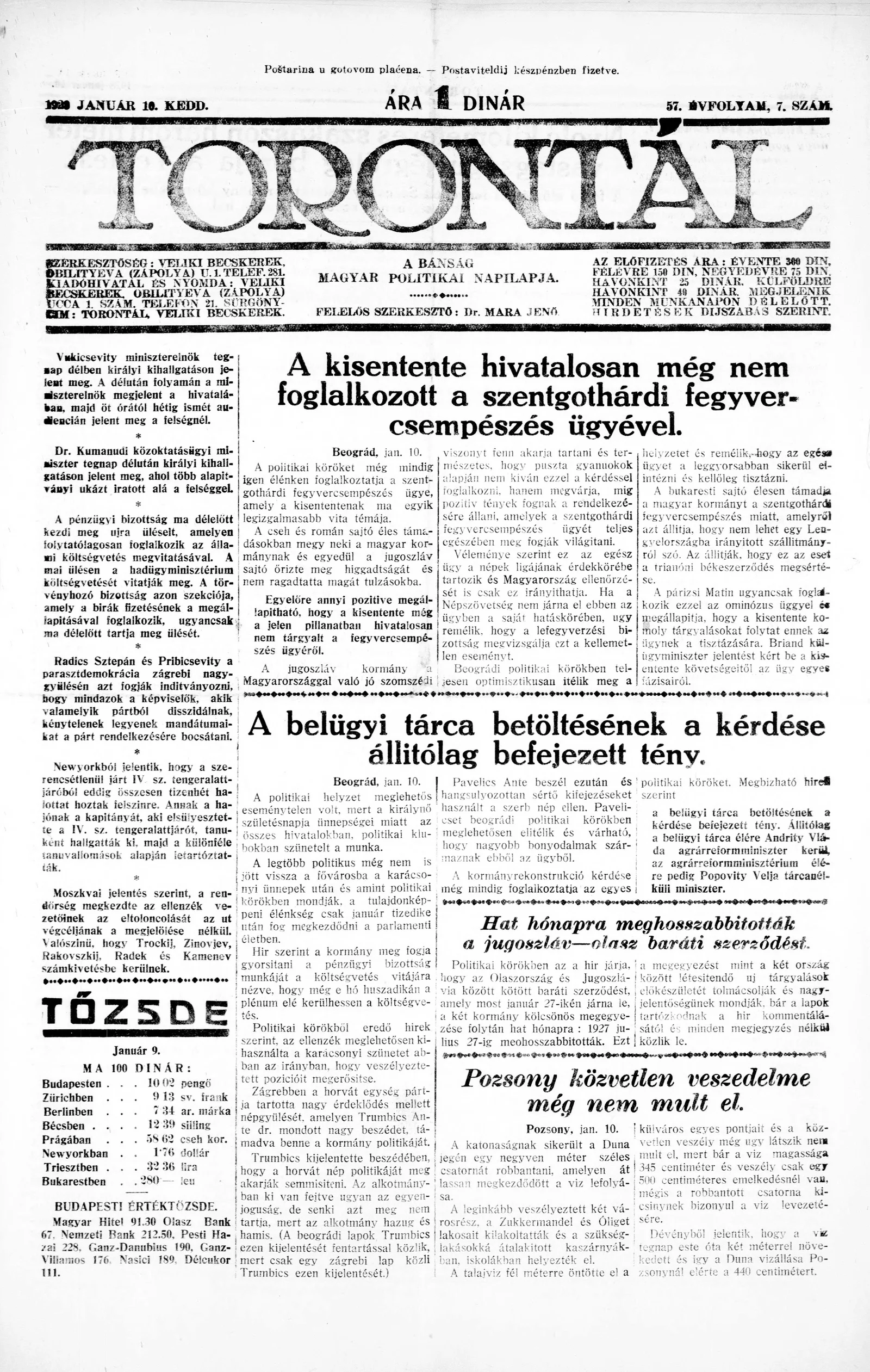 Torontál, 57. évf. 1928. január 10. 7. sz.