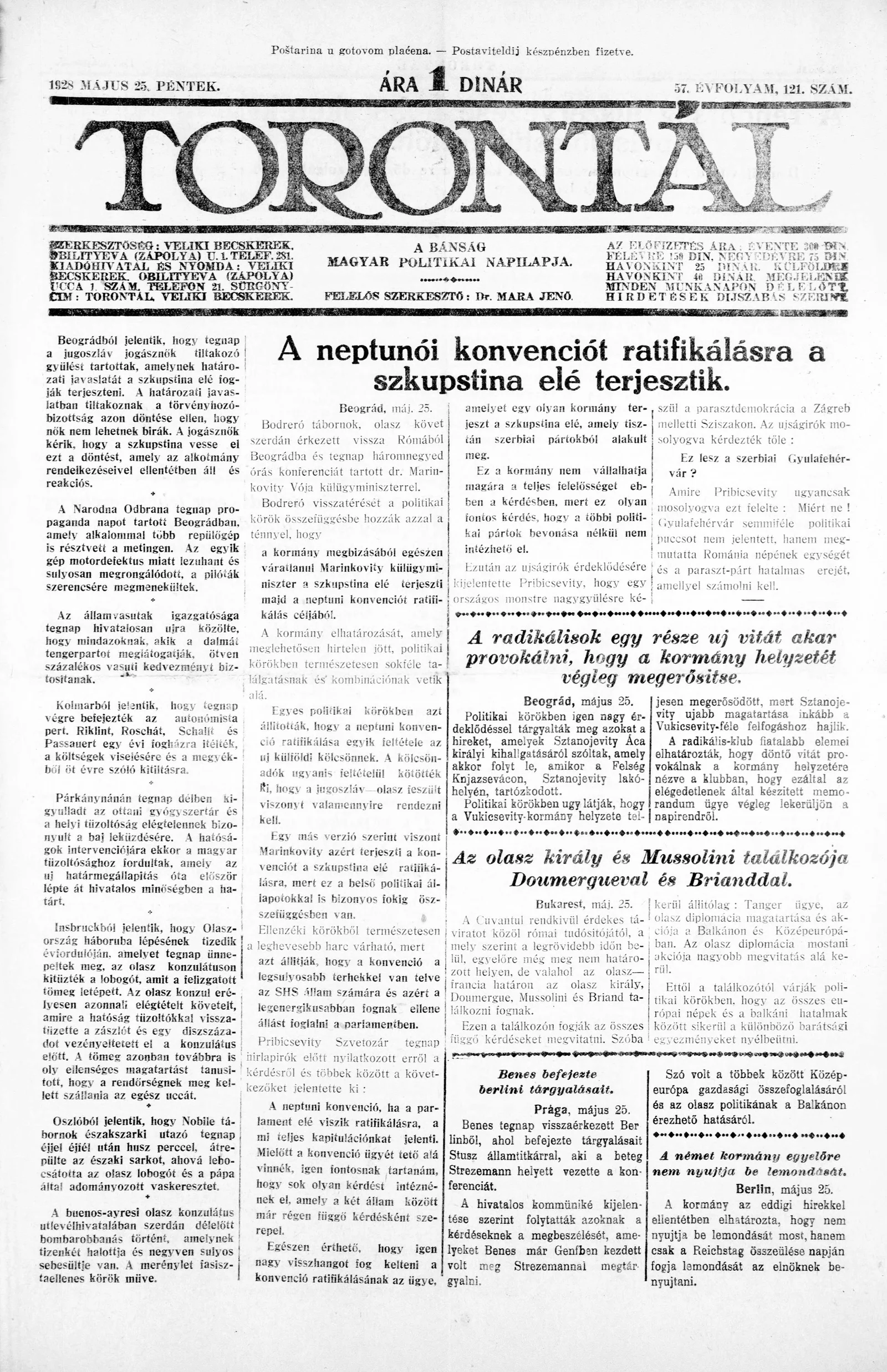 Torontál, 57. évf. 1928. május 25. 121. sz.