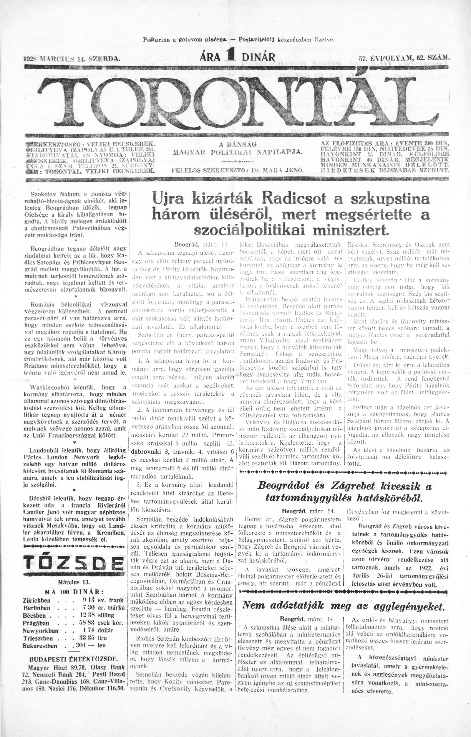 Torontál, 57. évf. 1928. március 14. 62. sz.