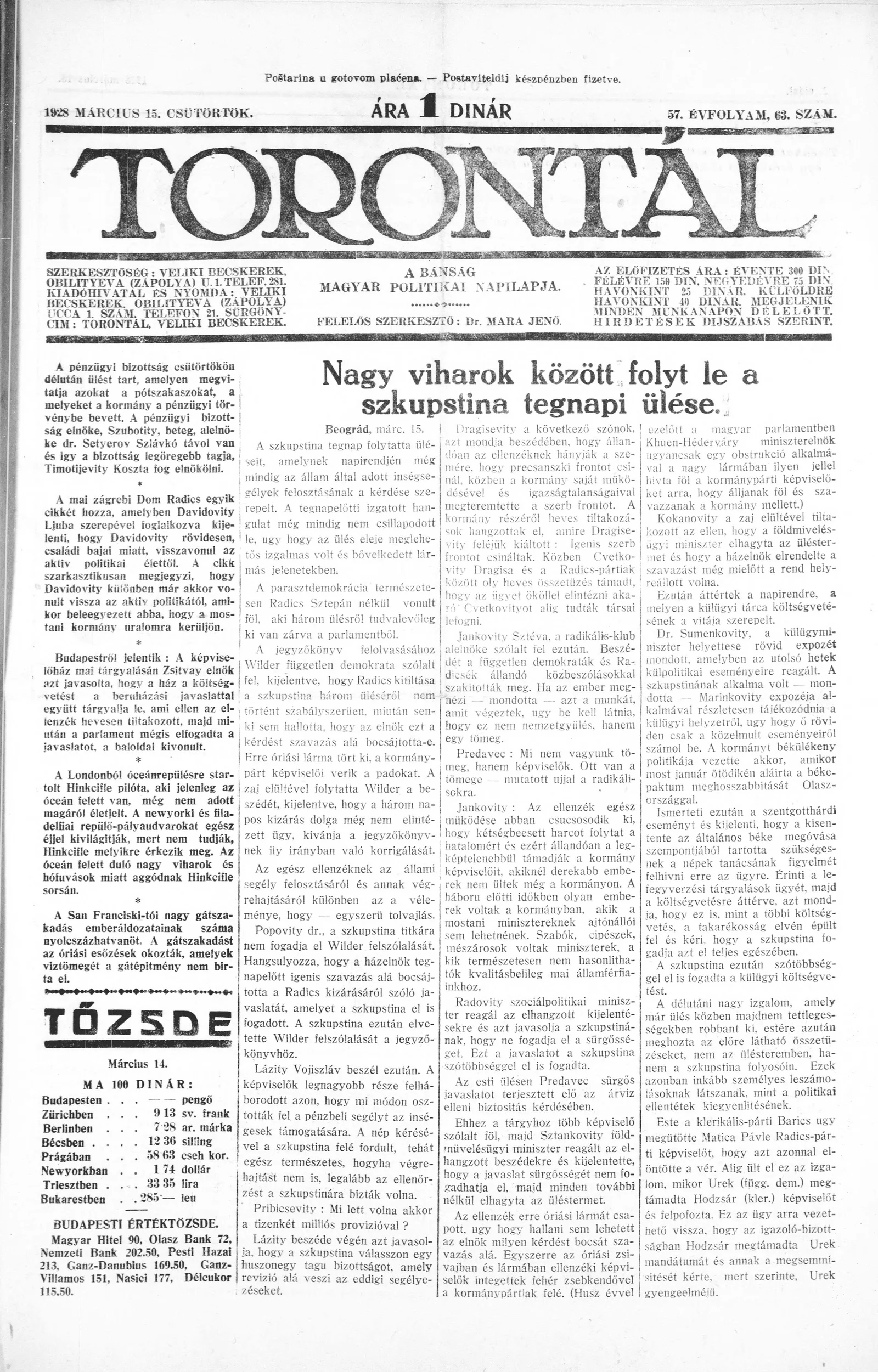 Torontál, 57. évf. 1928. március 15. 63. sz.