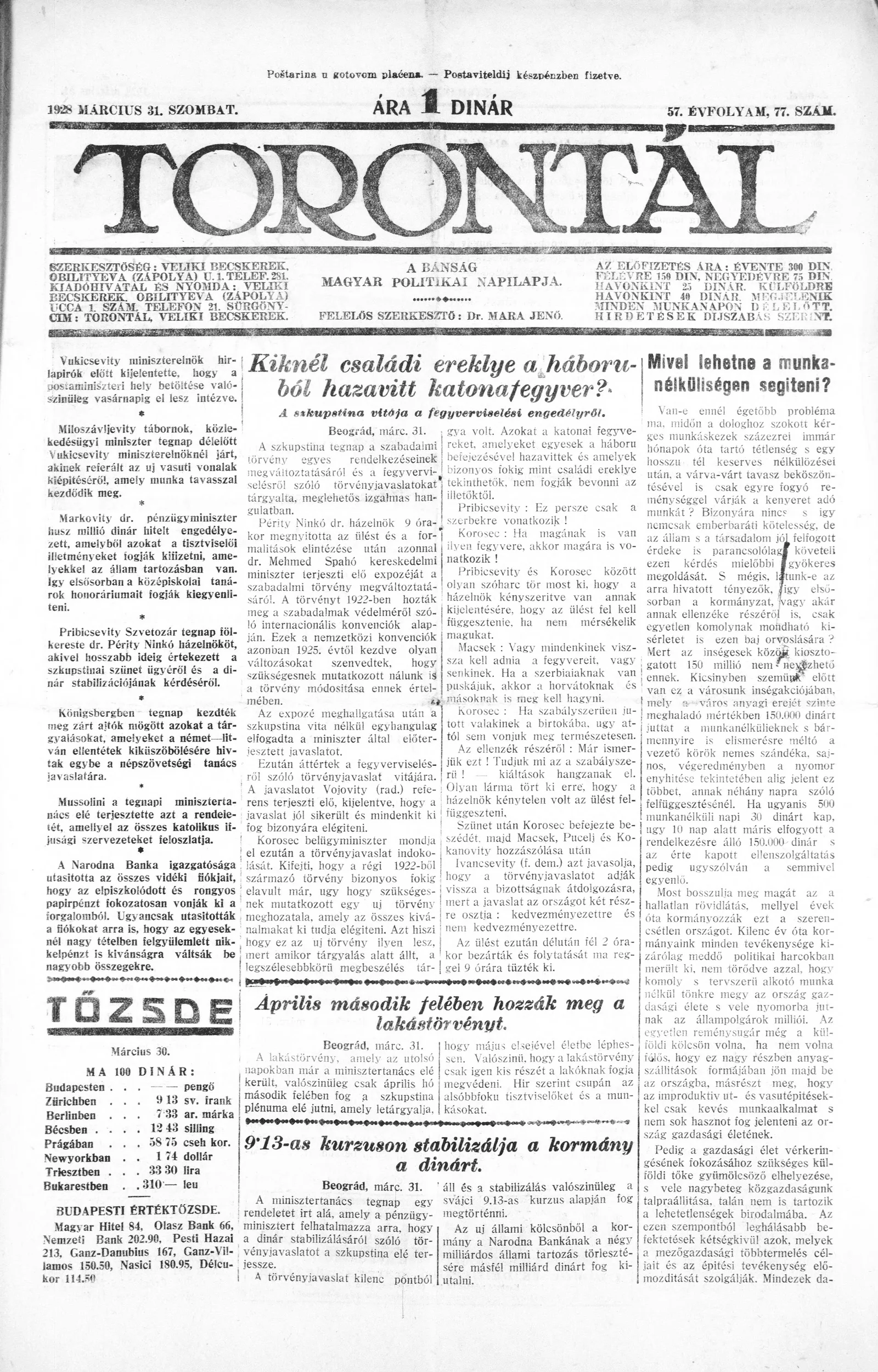 Torontál, 57. évf. 1928. március 31. 77. sz.