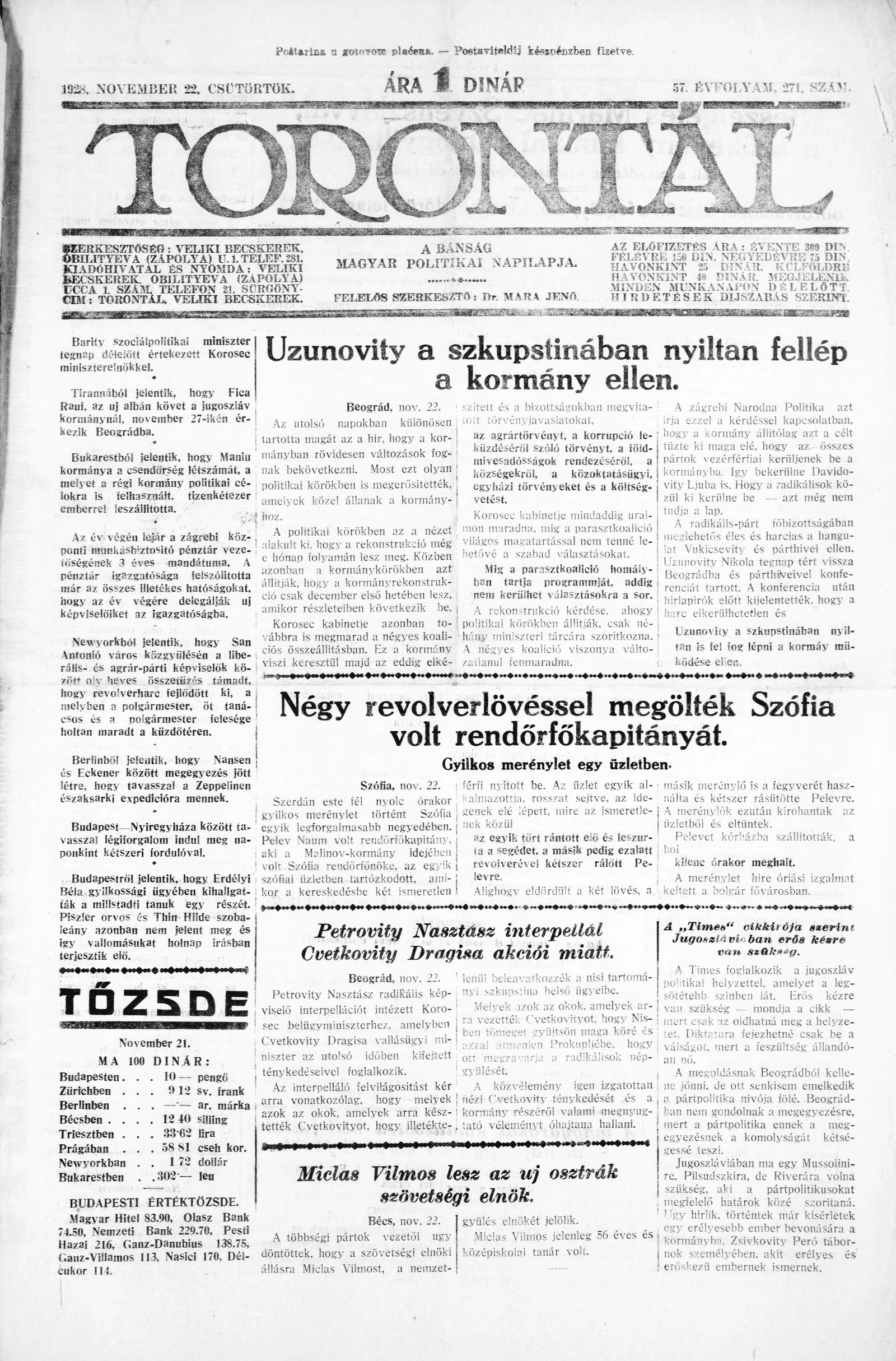 Torontál, 57. évf. 1928. november 22. 271. sz.