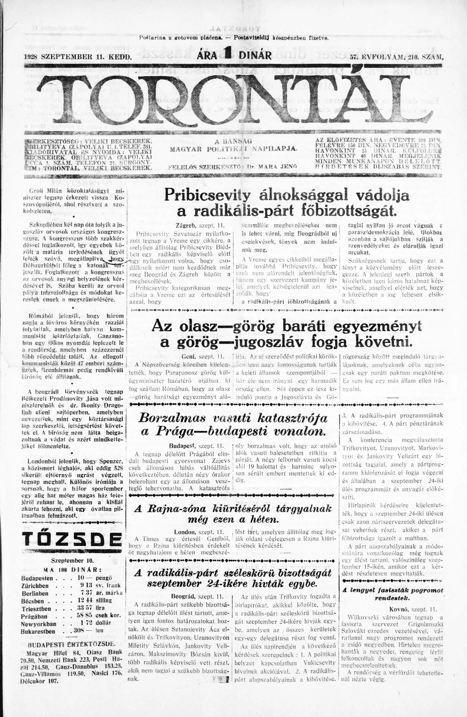 Torontál, 57. évf. 1928. szeptember 11. 210. sz.