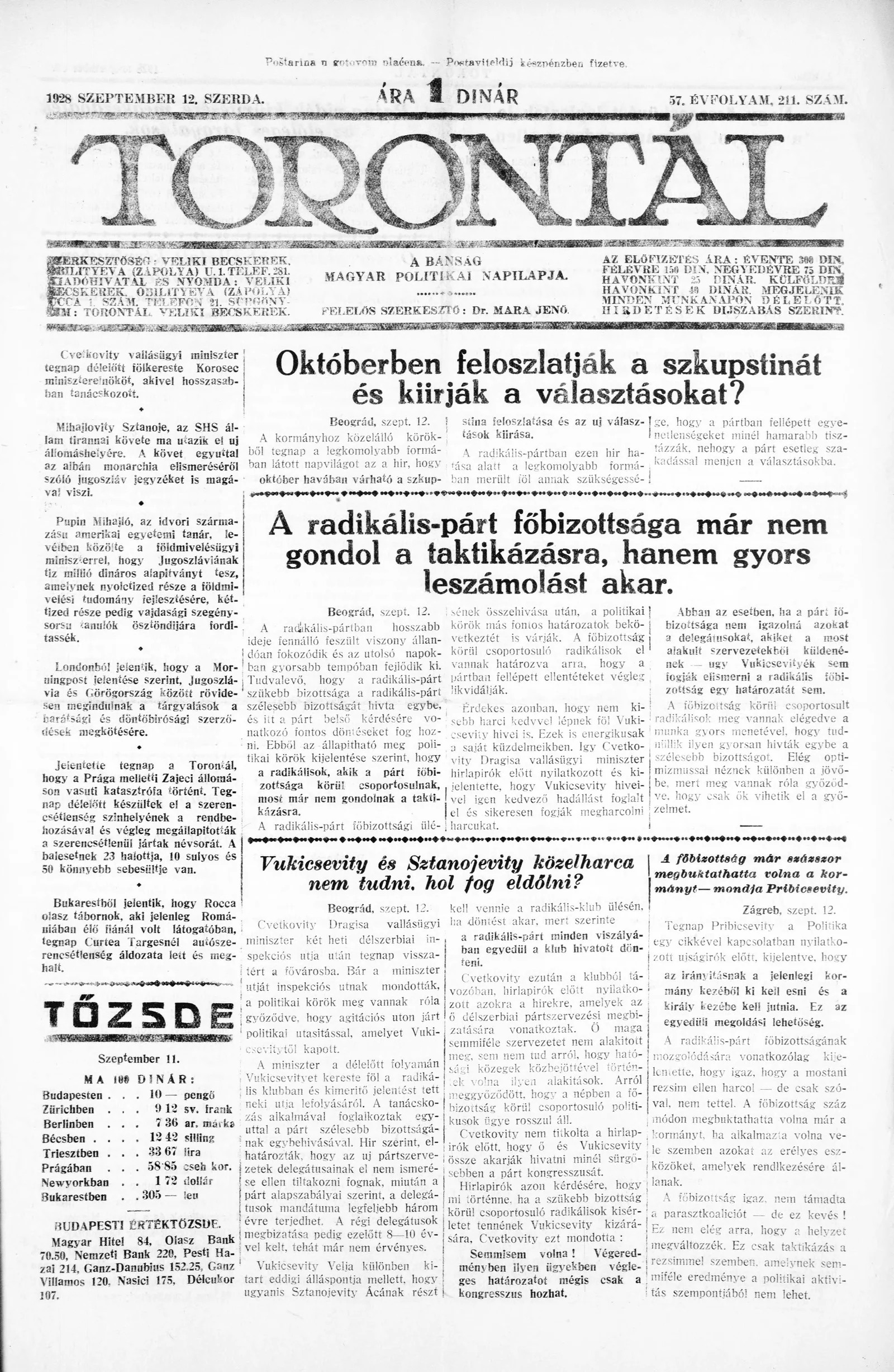 Torontál, 57. évf. 1928. szeptember 12. 211. sz.