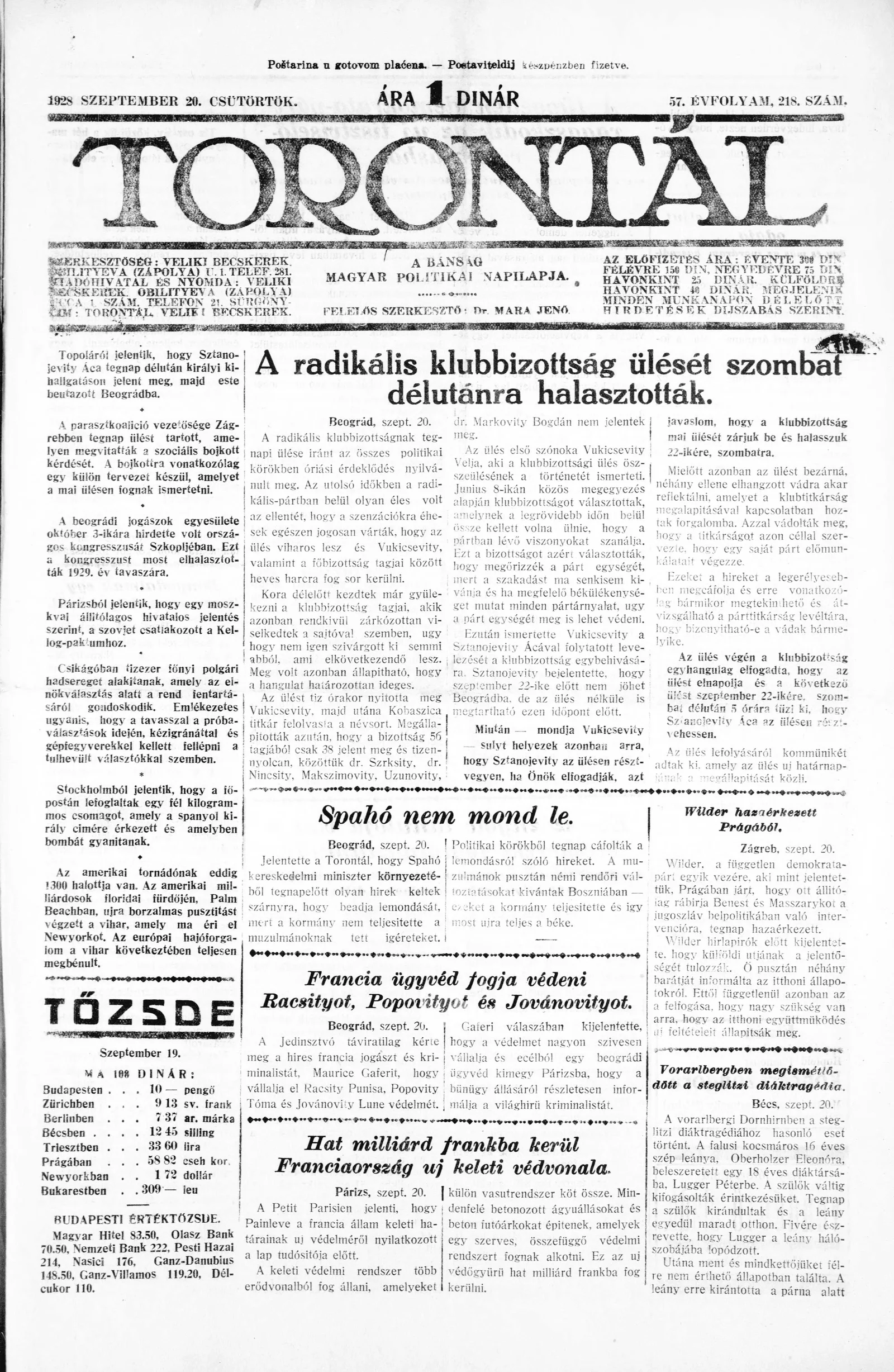 Torontál, 57. évf. 1928. szeptember 20. 218. sz.