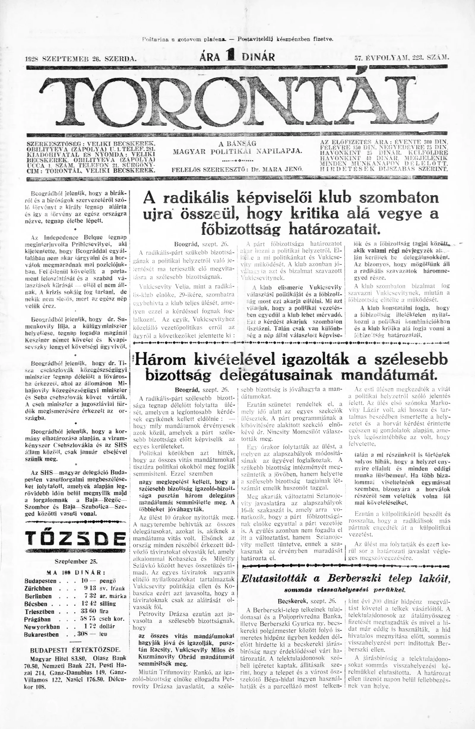 Torontál, 57. évf. 1928. szeptember 26. 223. sz.