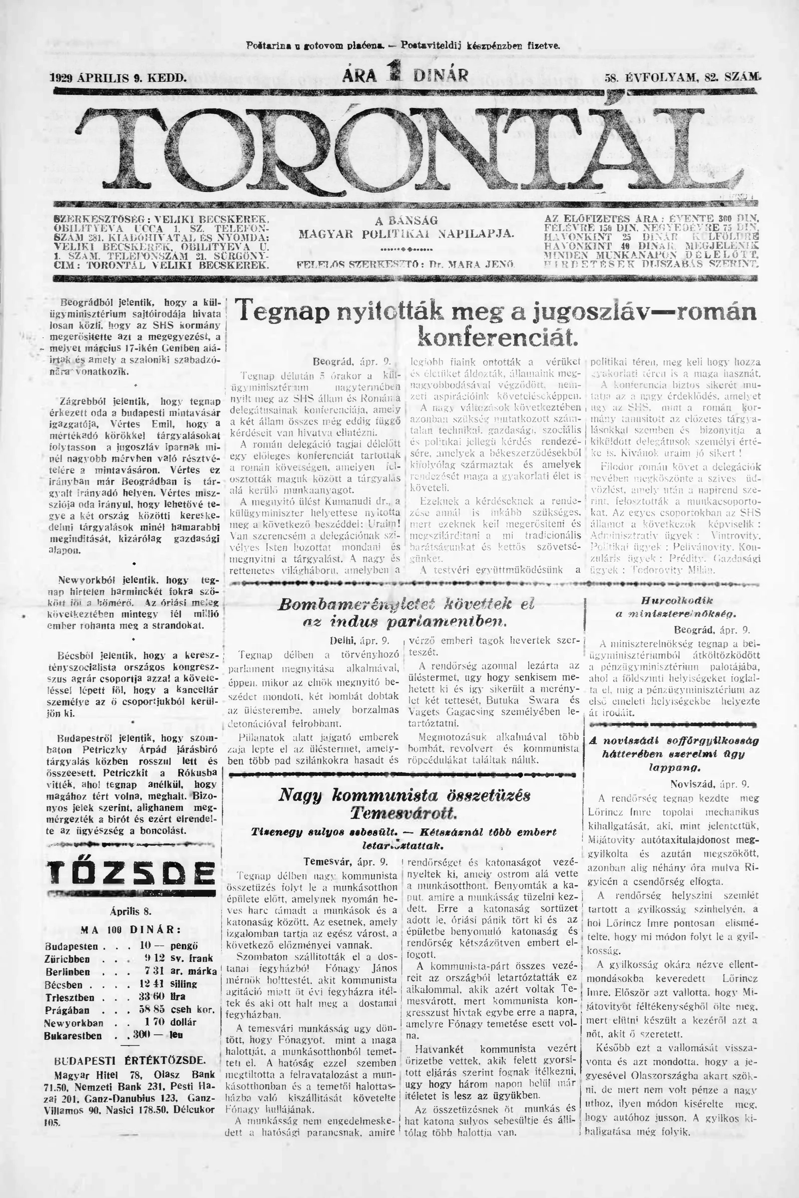 Torontál, 58. évf. 1929. április 9. 82. sz.