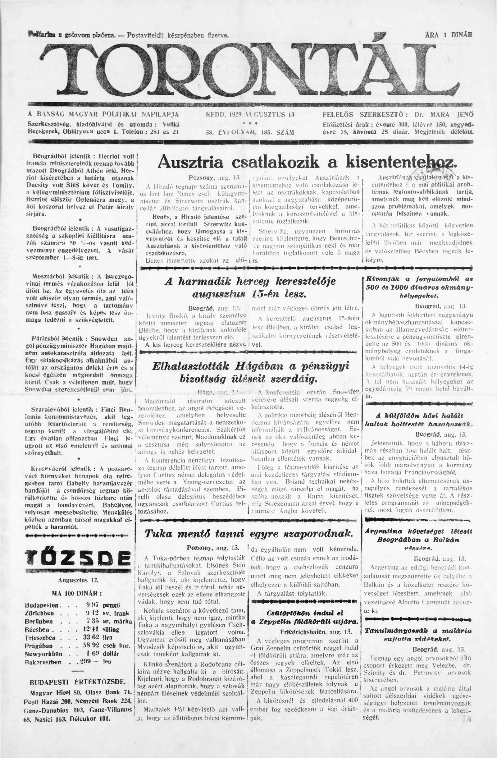 Torontál, 58. évf. 1929. augusztus 13. 185. sz.