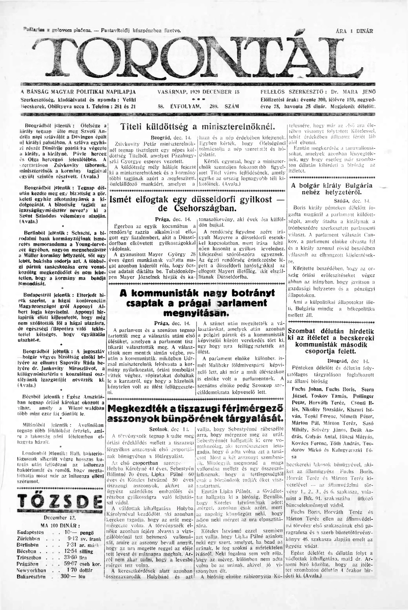 Torontál, 58. évf. 1929. december 15. 289. sz.