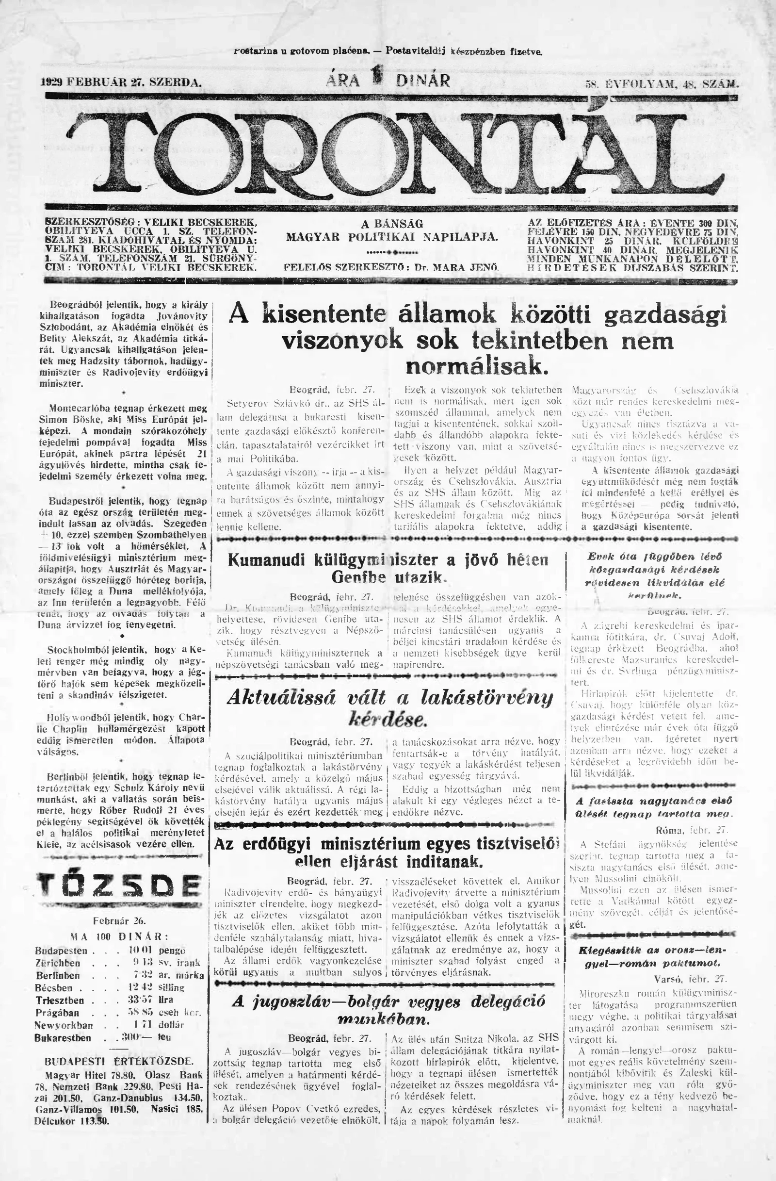 Torontál, 58. évf. 1929. február 27. 48. sz.