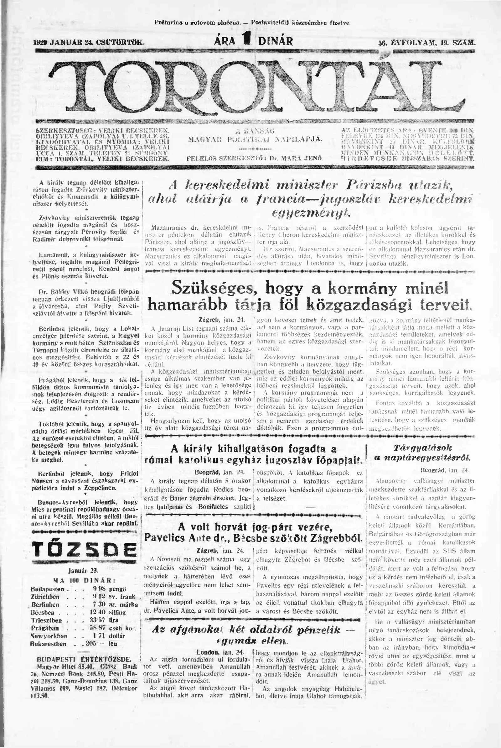 Torontál, 58. évf. 1929. január 24. 19. sz.