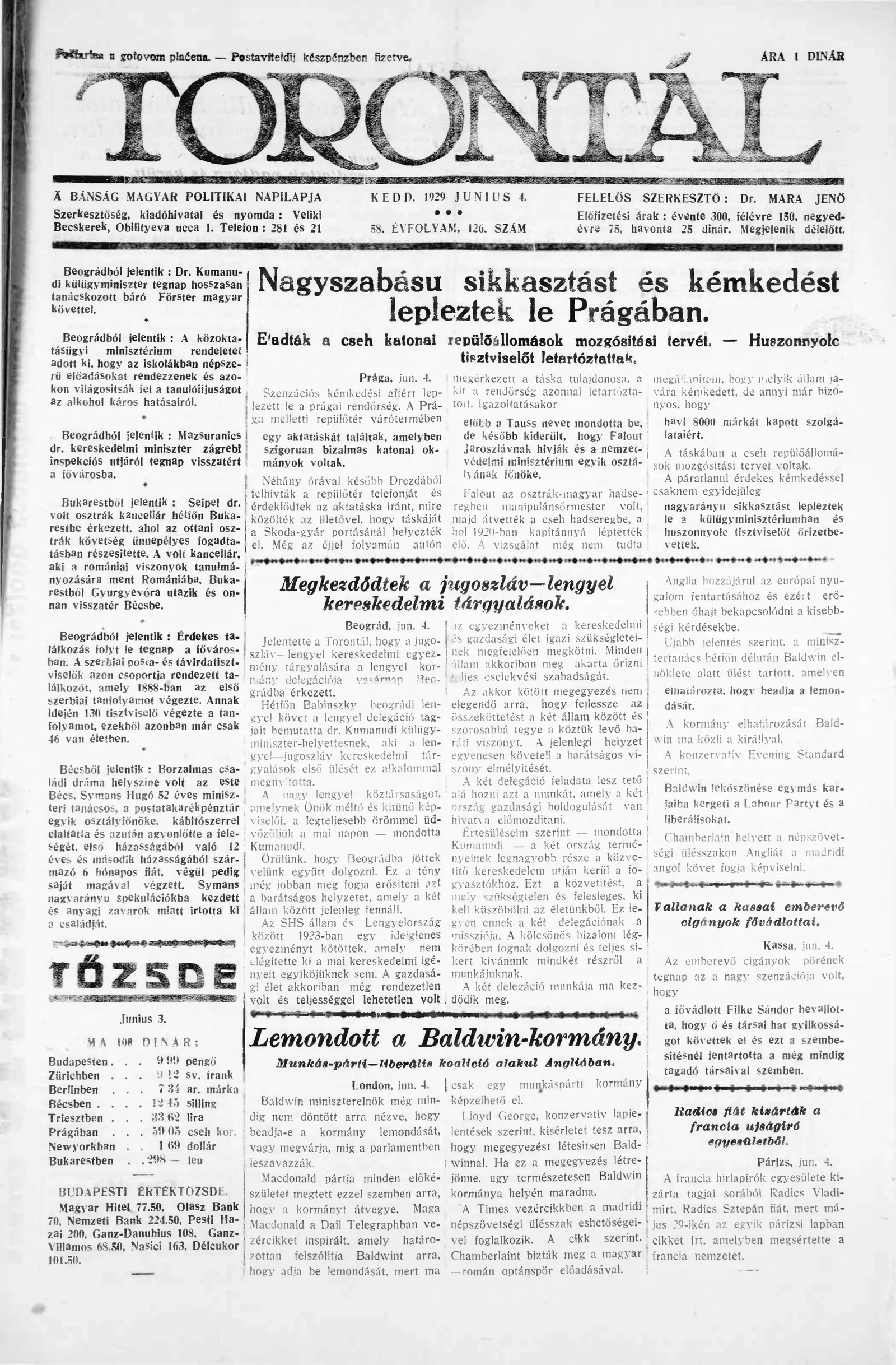 Torontál, 58. évf. 1929. június 4. 126. sz.